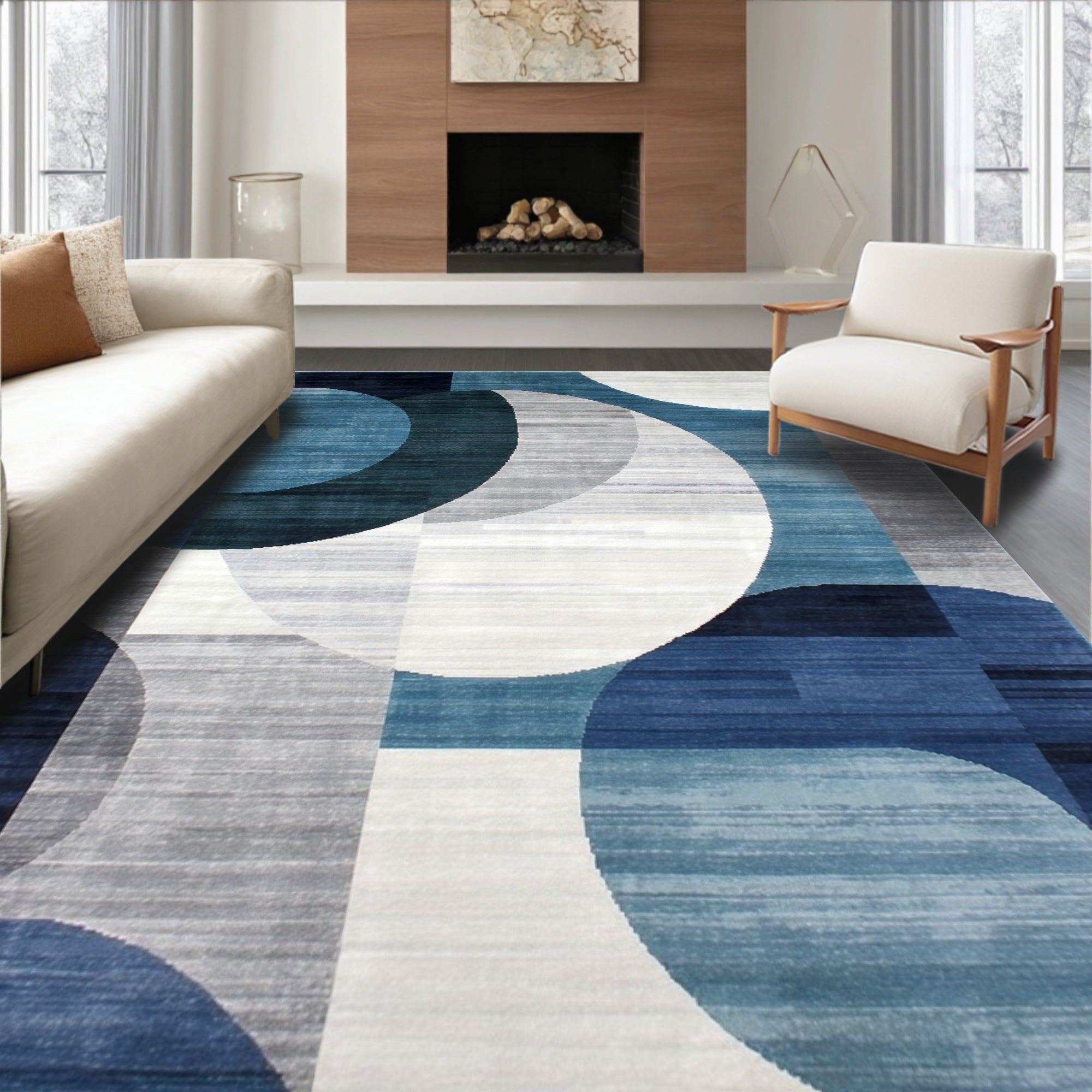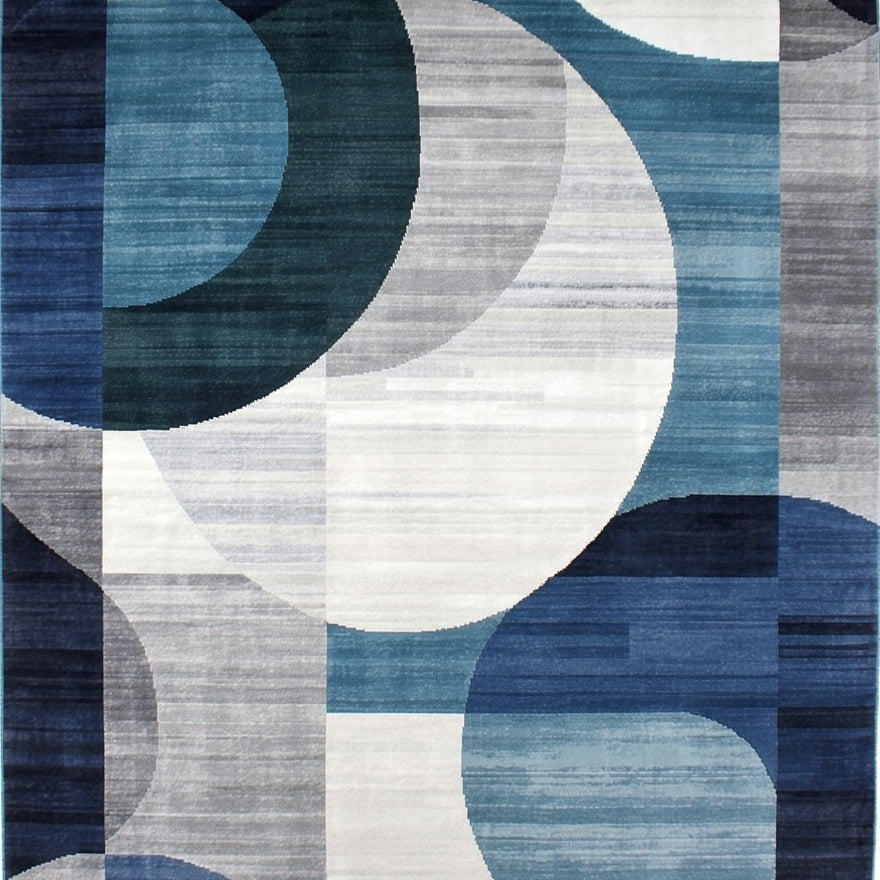 Dynamic Grey and Blue Mixed Hue Area Rug with Contemporary Spiral Pattern(Blue)
