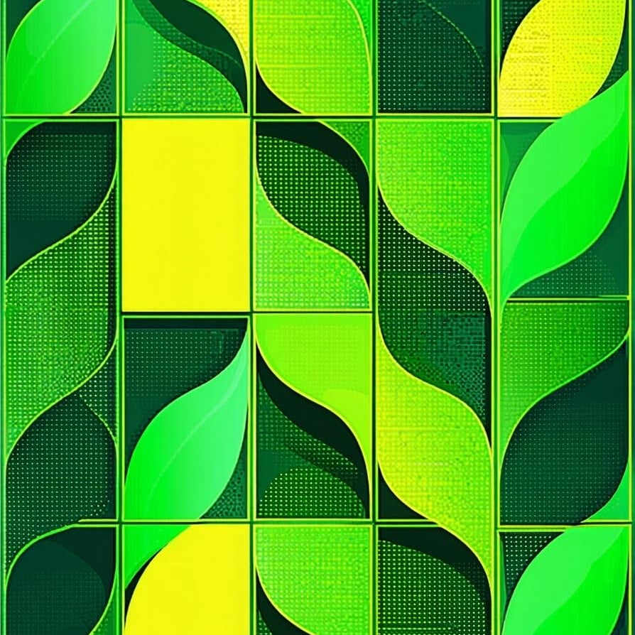 Dynamic Whimsical Curved Motifs(Green)