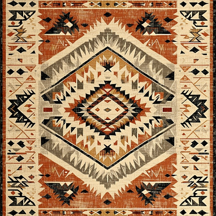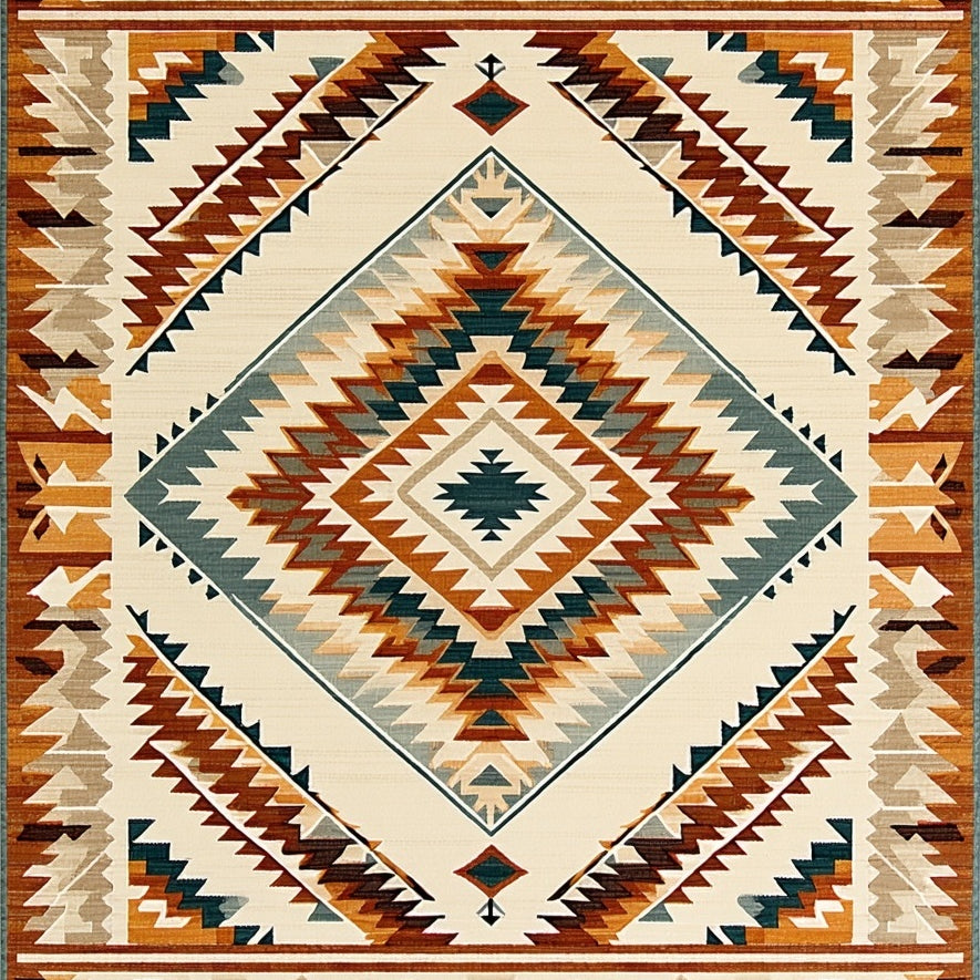 Earth Tone Aztec with Layered Medallion and Chevron(Beige)