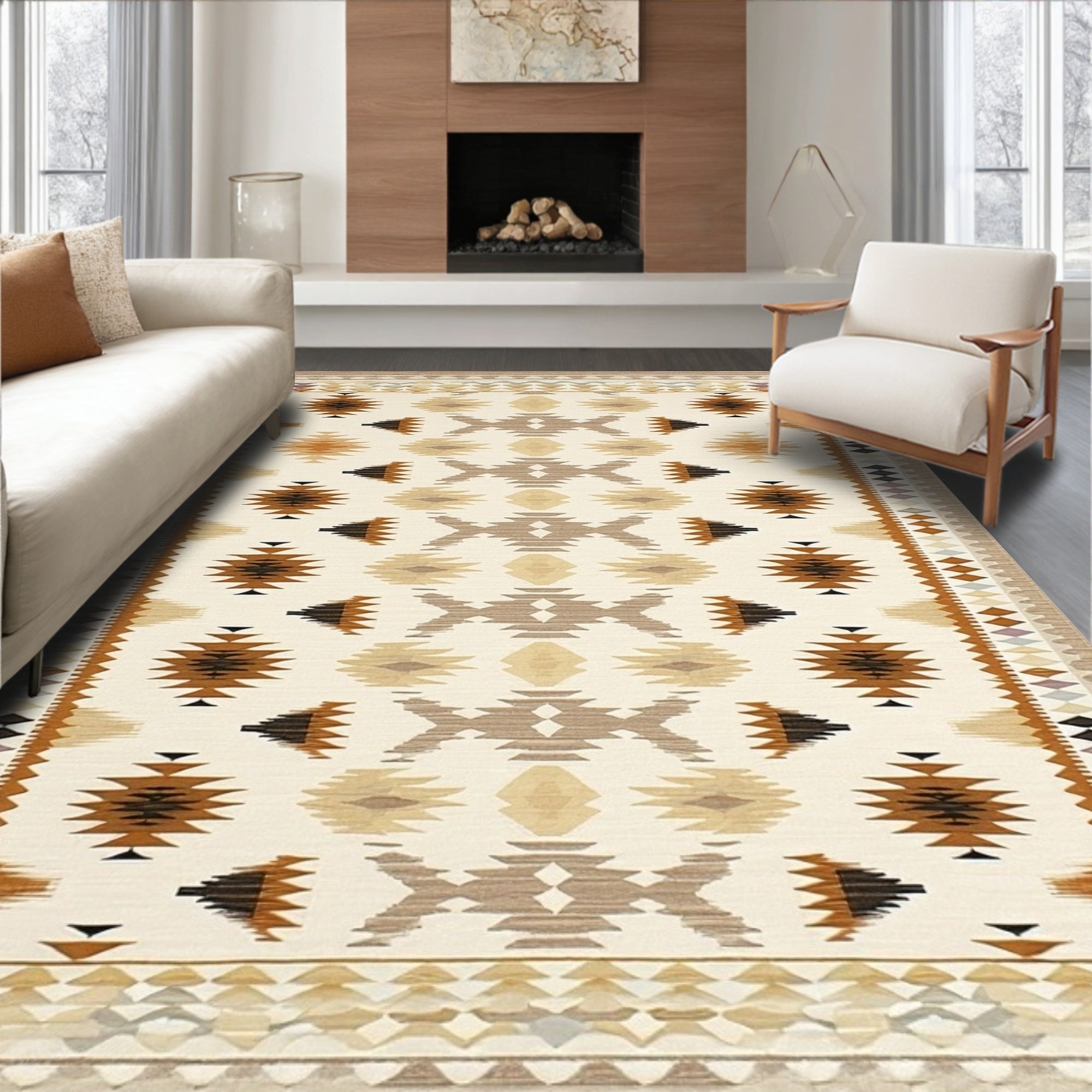 Earth Tone Rug with Elegant Geometric Patterns and Boho Chic Style(Beige)