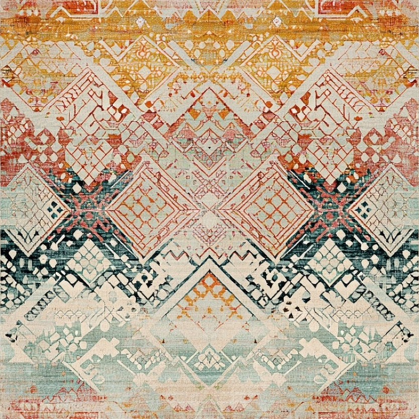 Eclectic Geometric Rug with Boho Diamond Layers and Subtle Botanical Details(Orange)