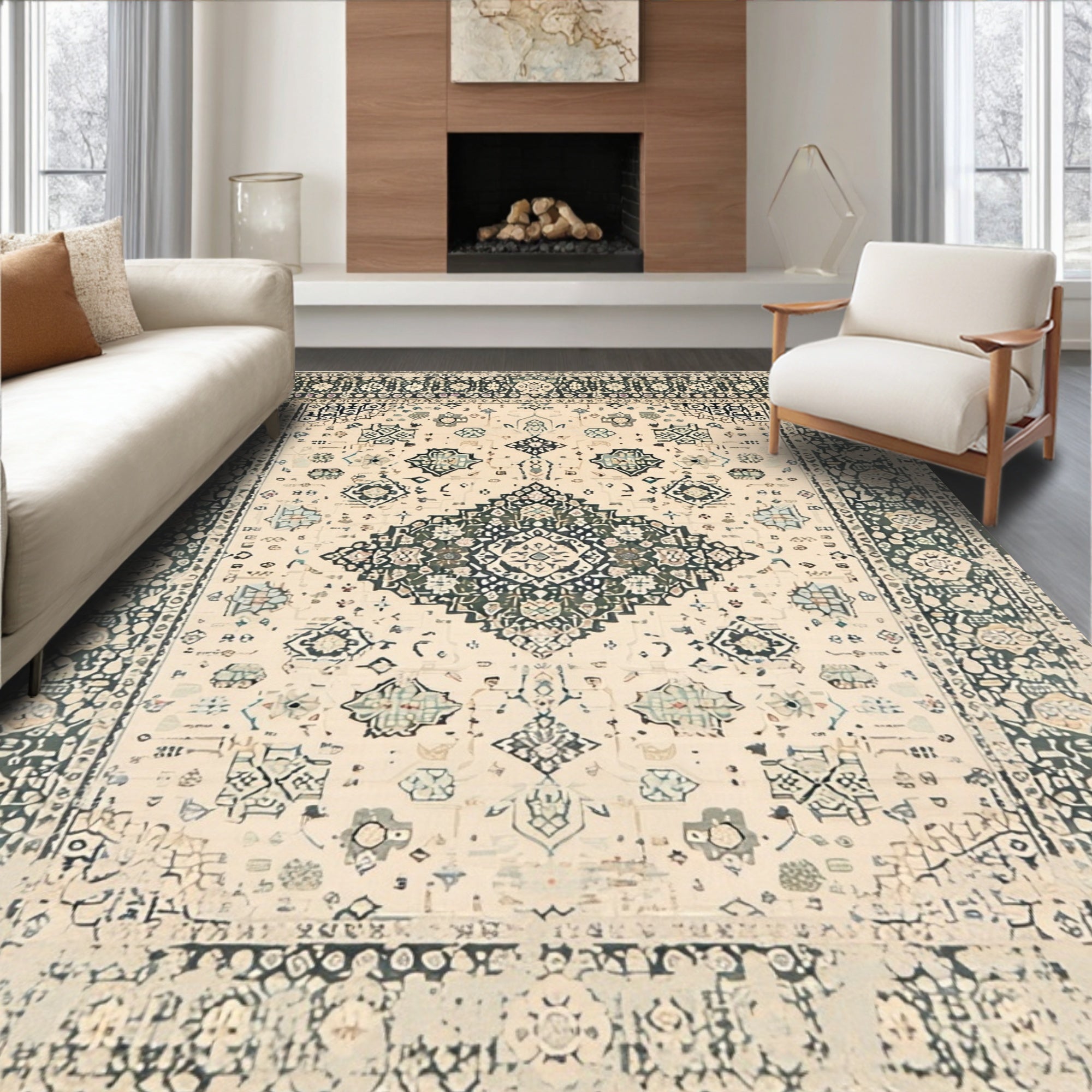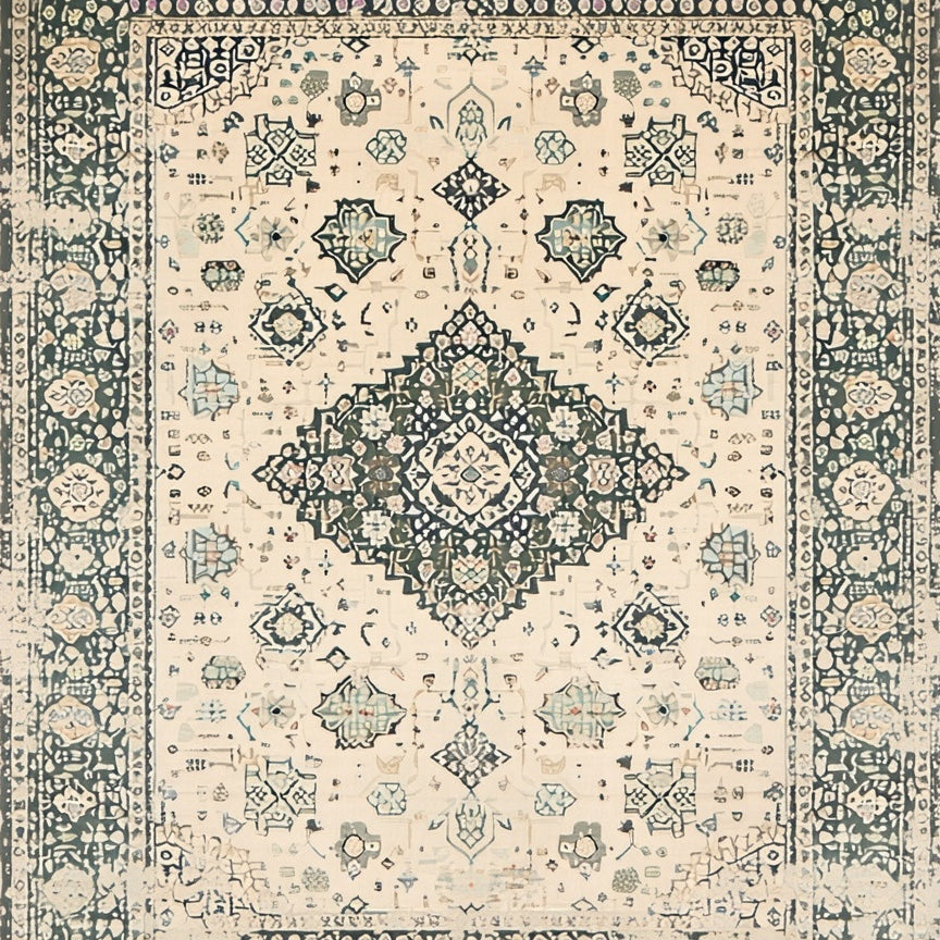 Eclectic Vintage with Faded Ornamental Medallions and Geometric Borders(Beige)