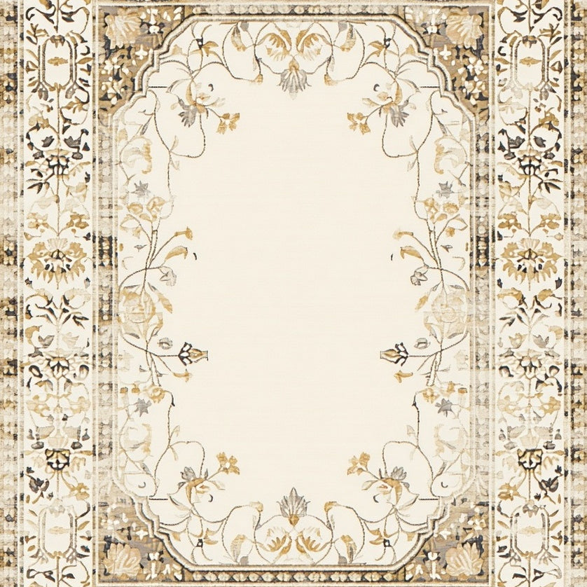 Eco Friendly Vinyl Floor Mat With Timeless Damask Heritage Design(Beige)