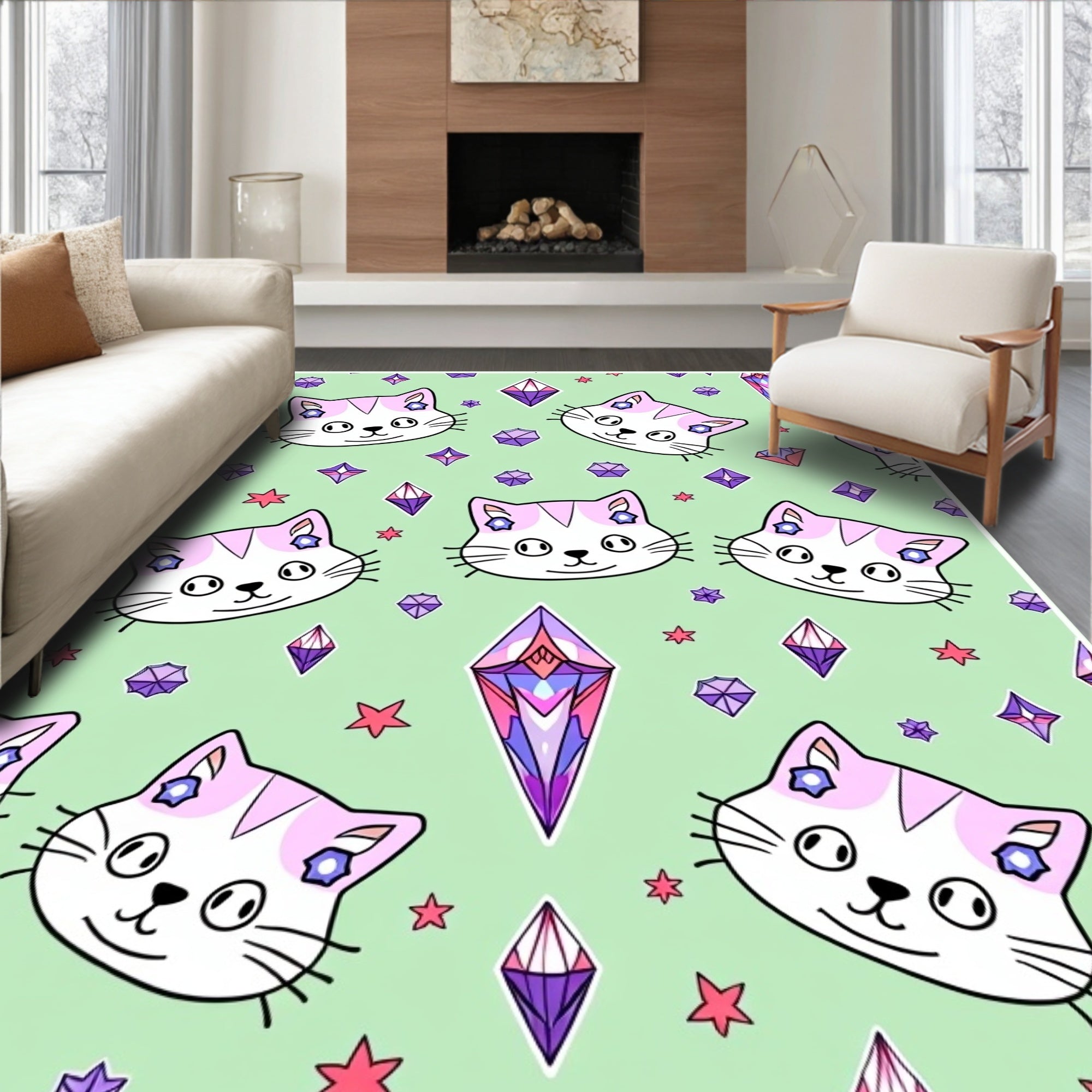 Electric Tabby Cat Portrait Decorative Floor with Snowflake Accents(Orange)