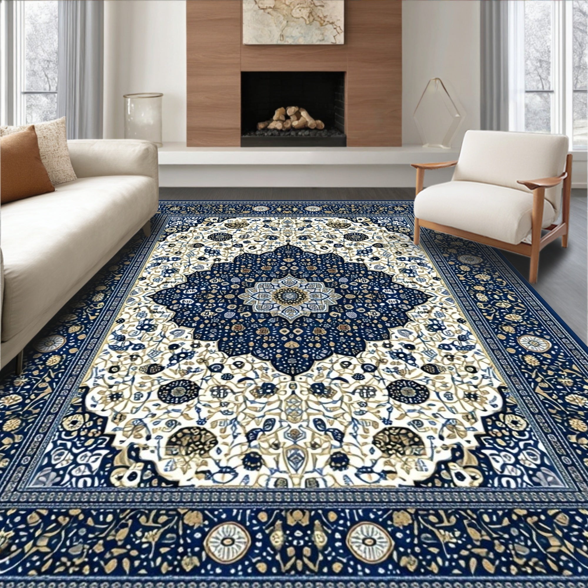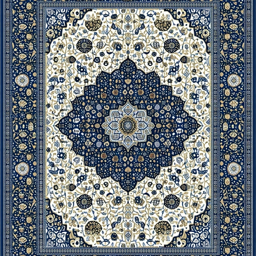 Elegant Area with Sophisticated Blue and Beige Medallion Design for(Blue)