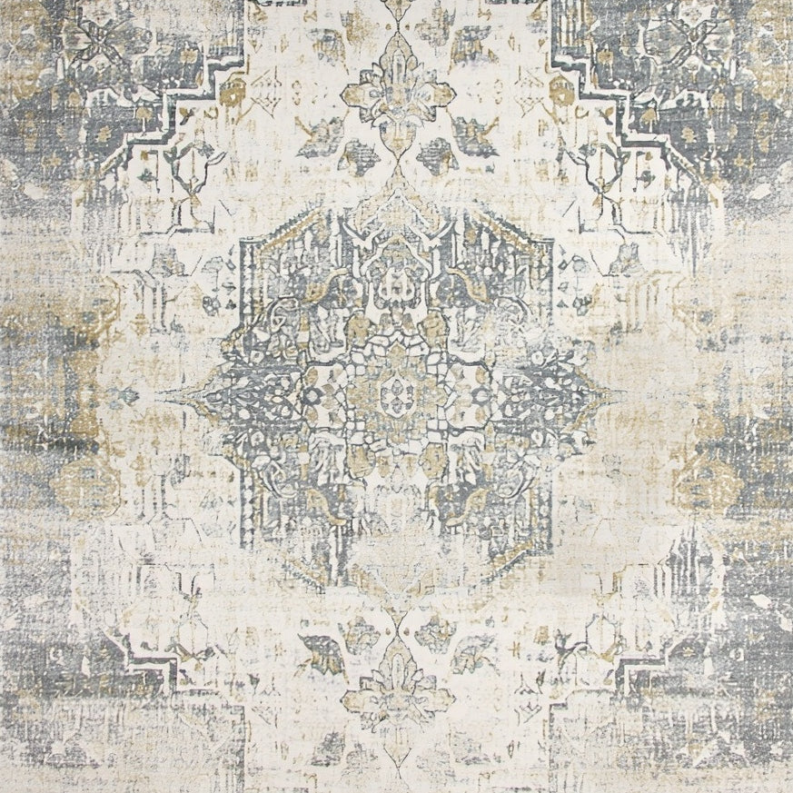 Elegant Beige and Grey Abstract Medallion with Worn Vintage Charm(Beige)