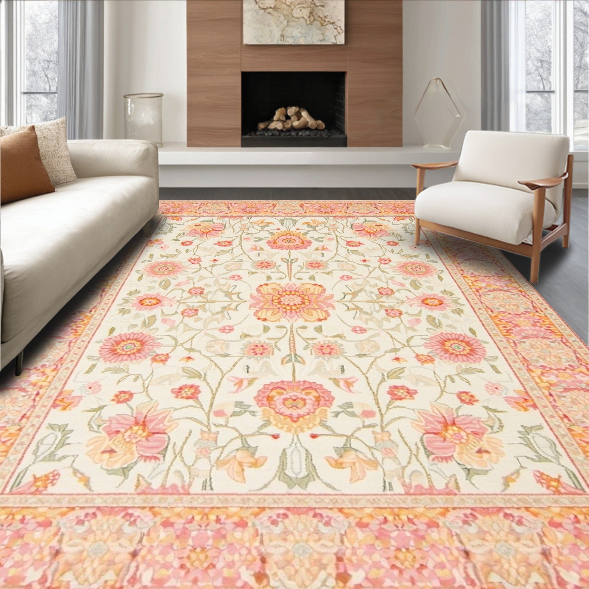 Elegant Area with Subtle Pink and Gold Leaf Design for Stylish Spaces(Pink)
