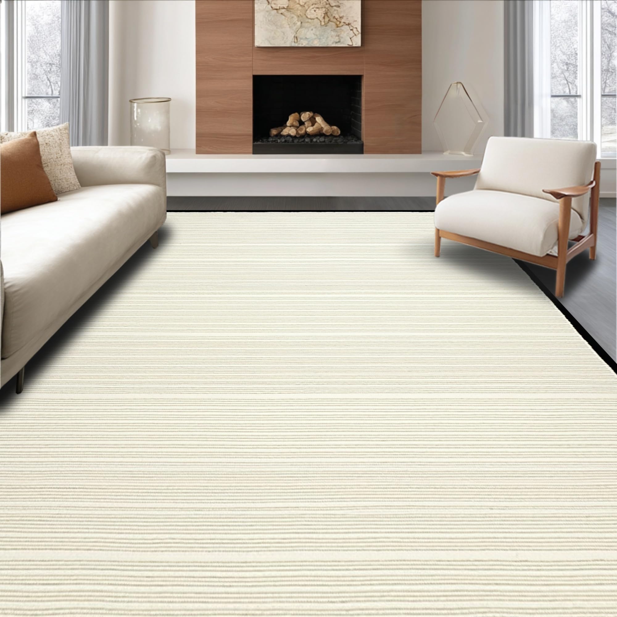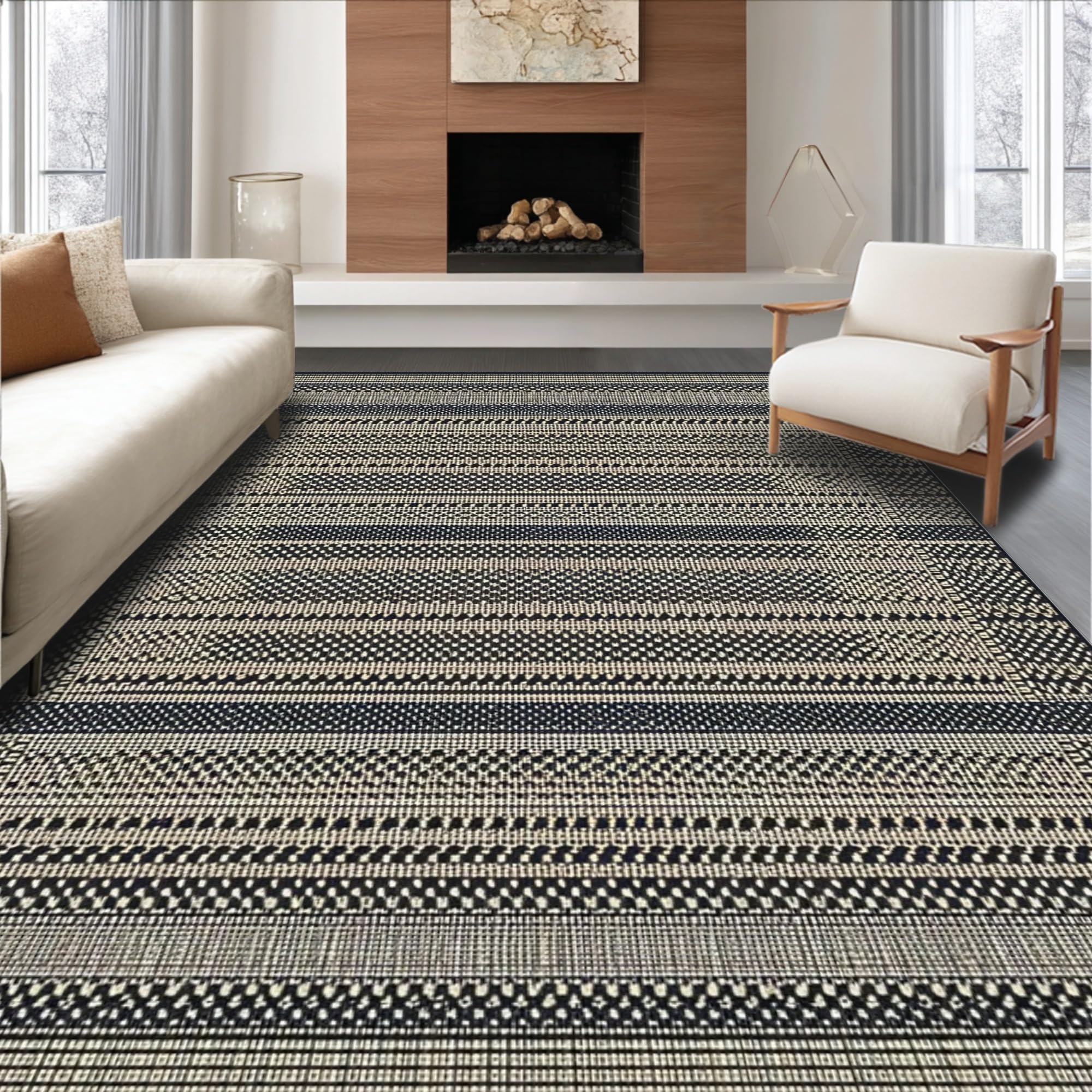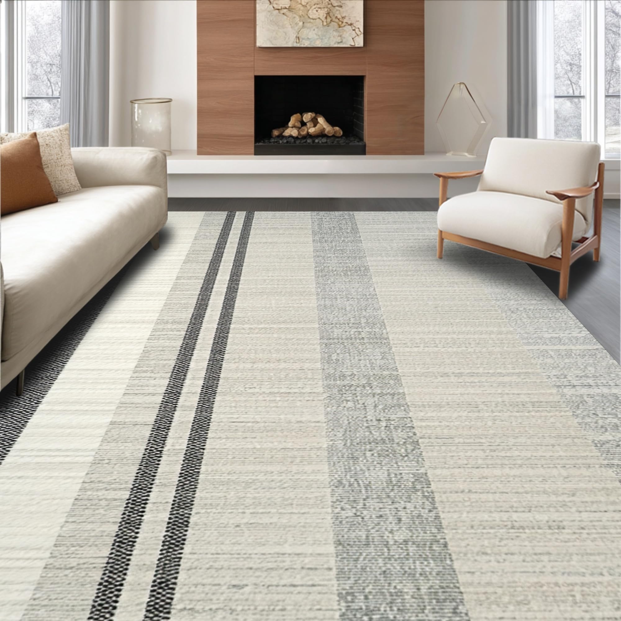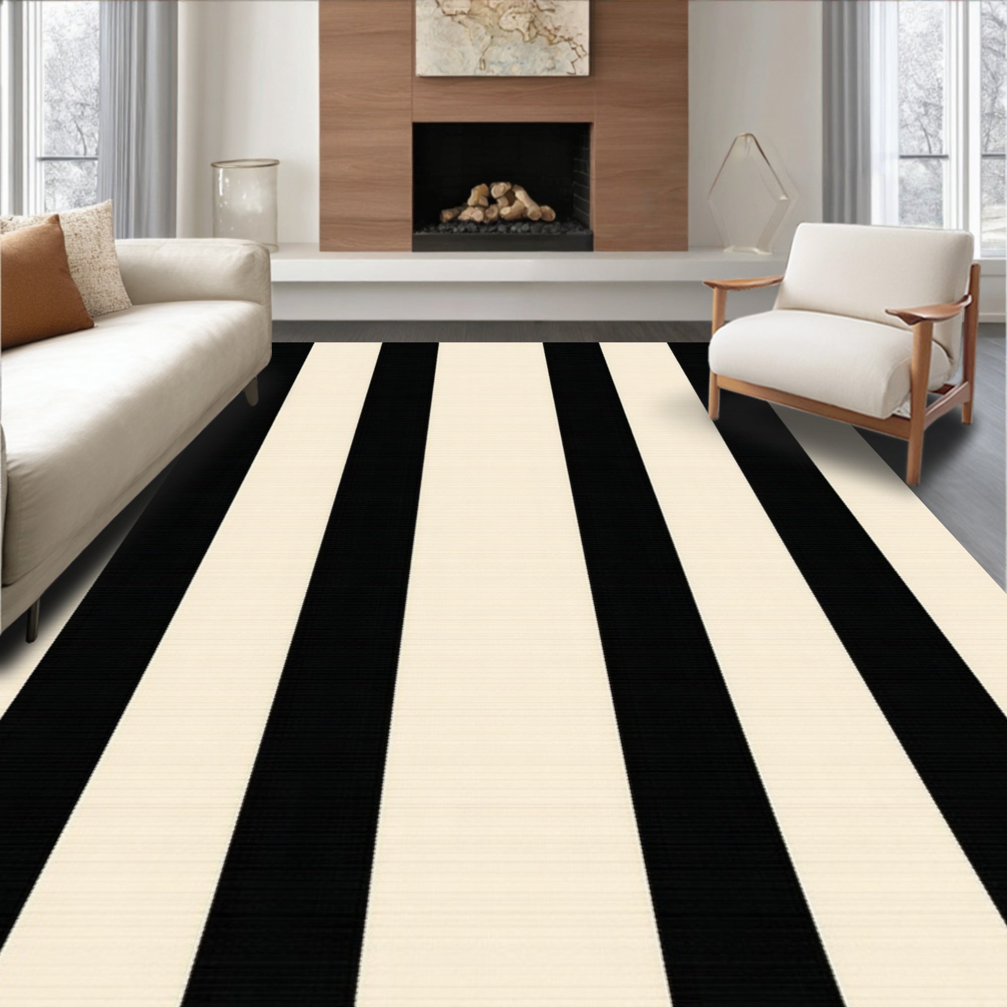 Elegant Black & White Stripe Woven Indoor/(Beige)