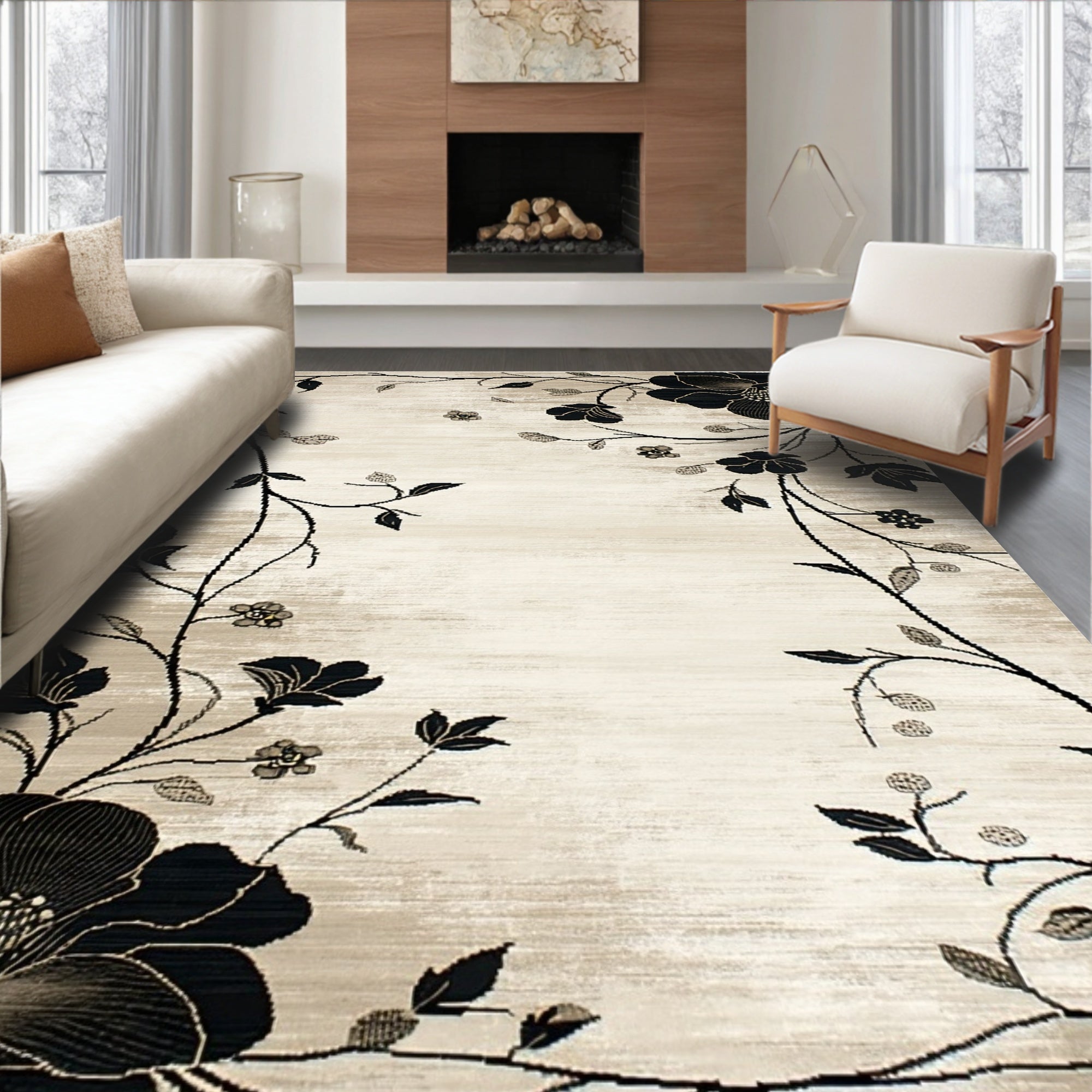 Elegant Black & Beige Stripe Area Modern Farmhouse Decor(Beige)
