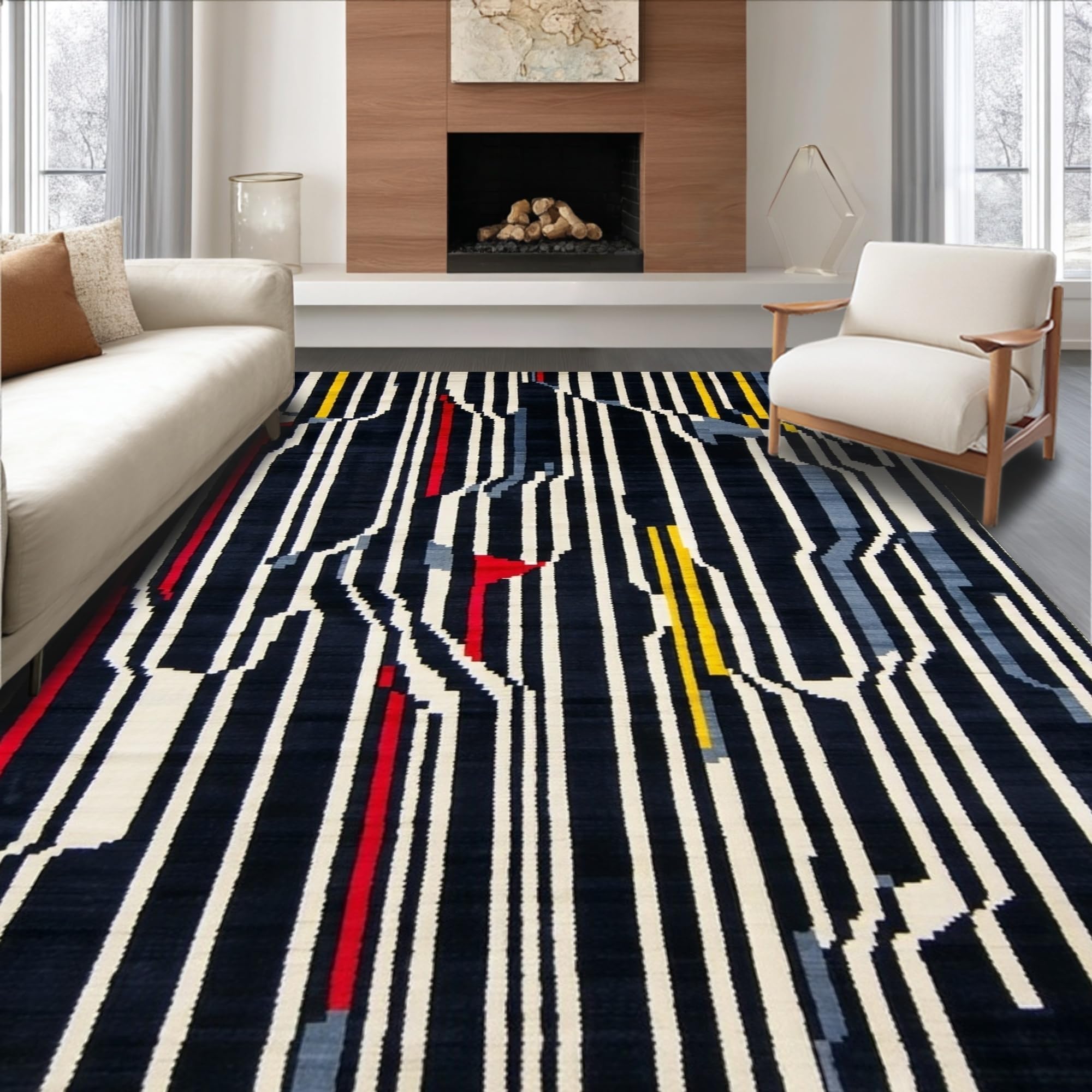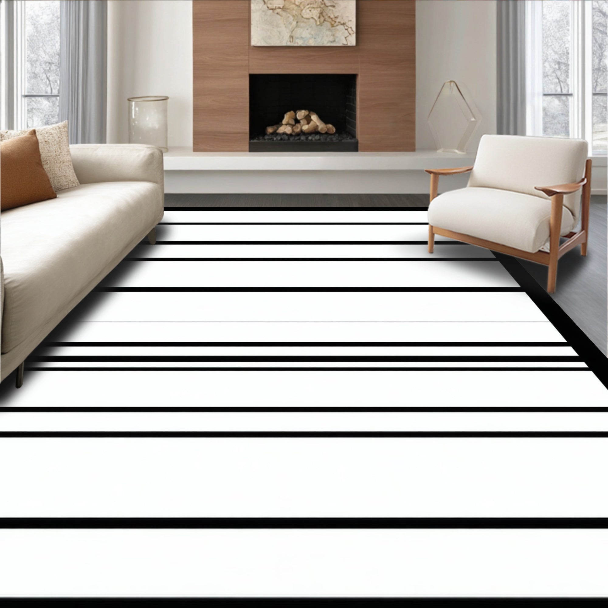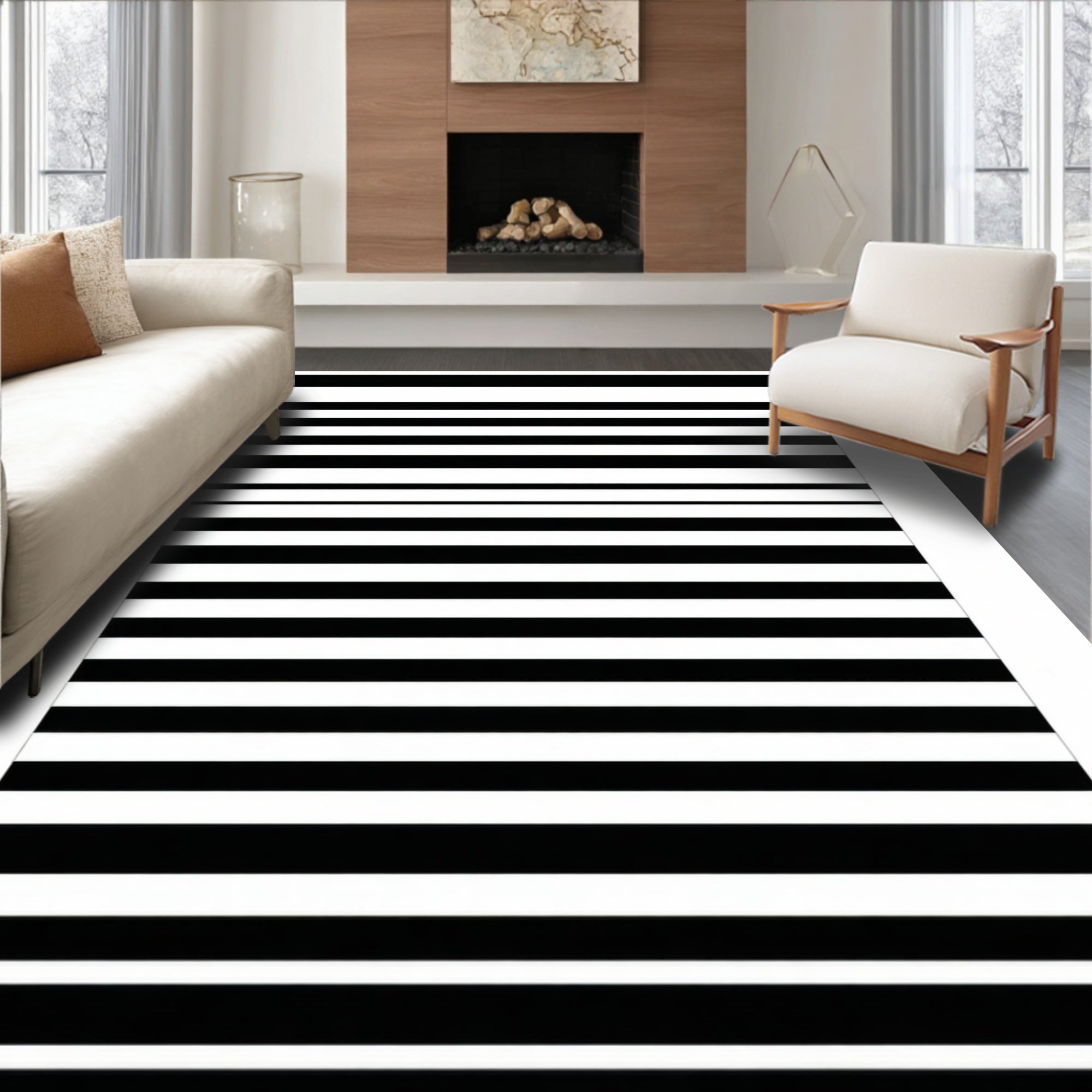 Elegant Black and White Striped Rug for Indoor and Use(Black)