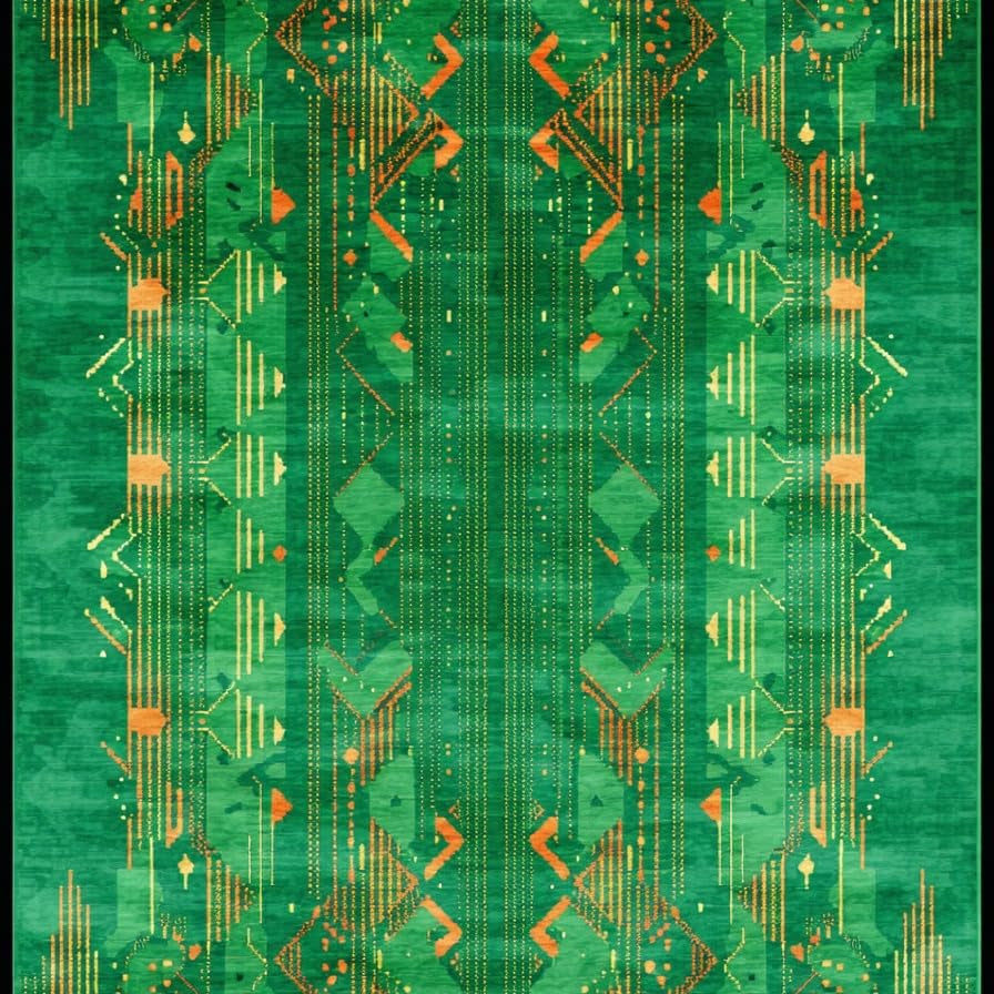 Elegant Emerald Green and Gold Abstract Area with Bold Shapes(Green)