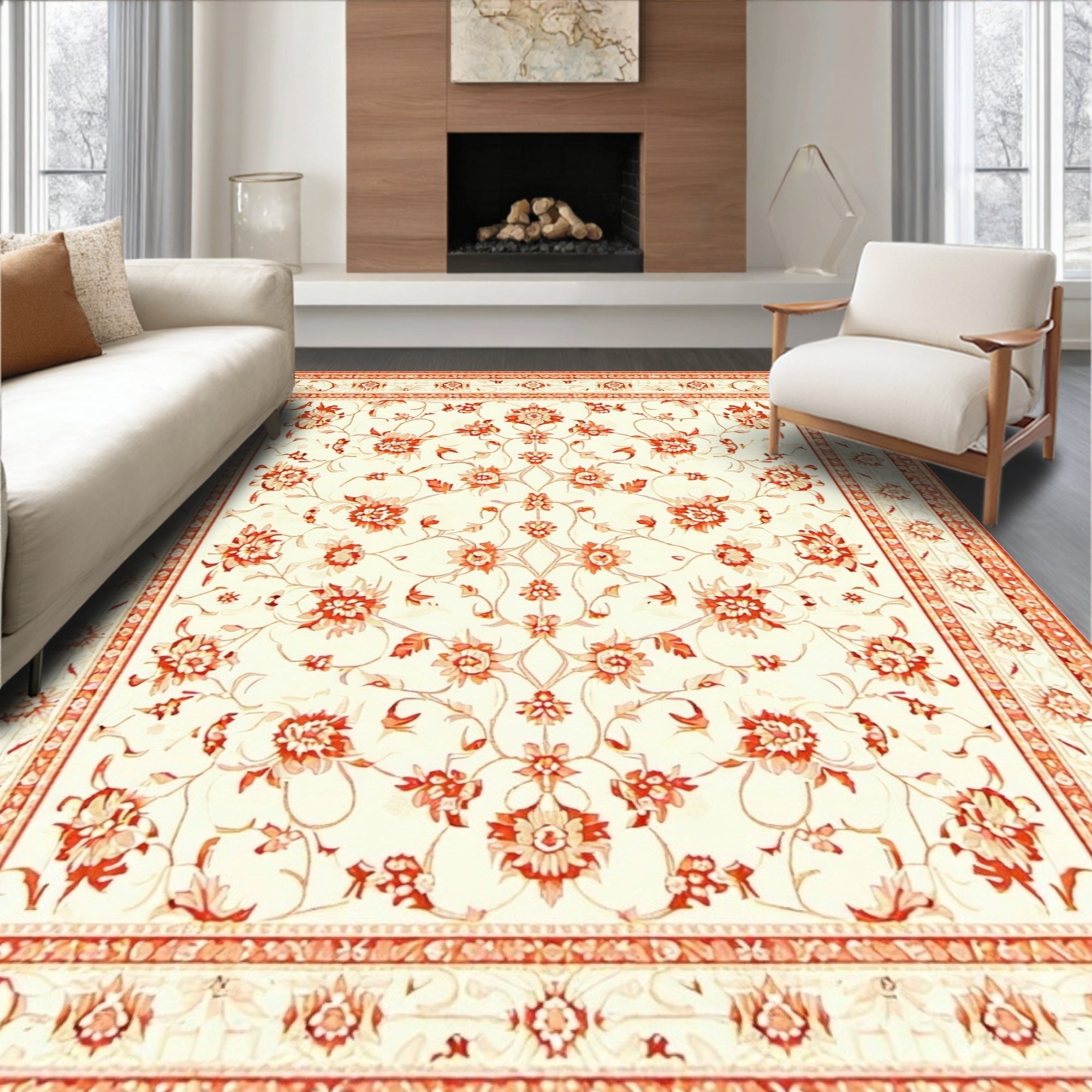 Elegant Entryway Cream Beige Area with Delicate Floral Motif(Beige)