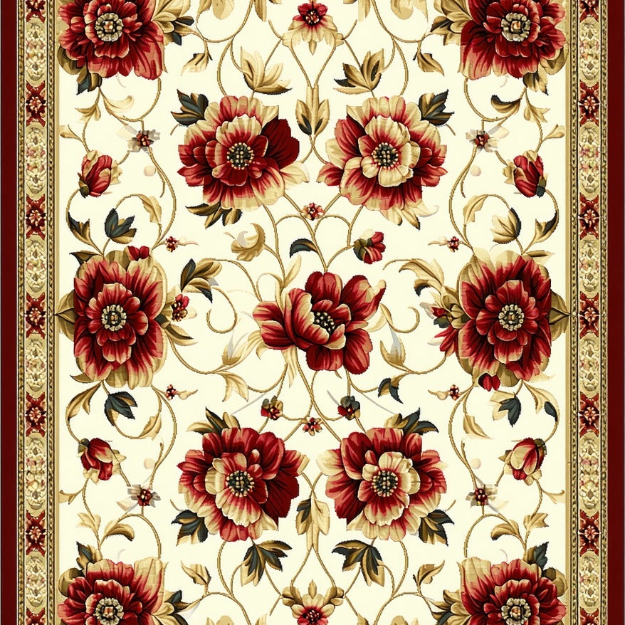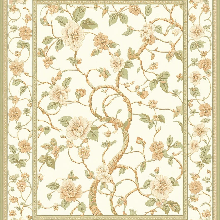 Elegant Floral Vines Area Graceful Beige Patterned Floor(Ivory)