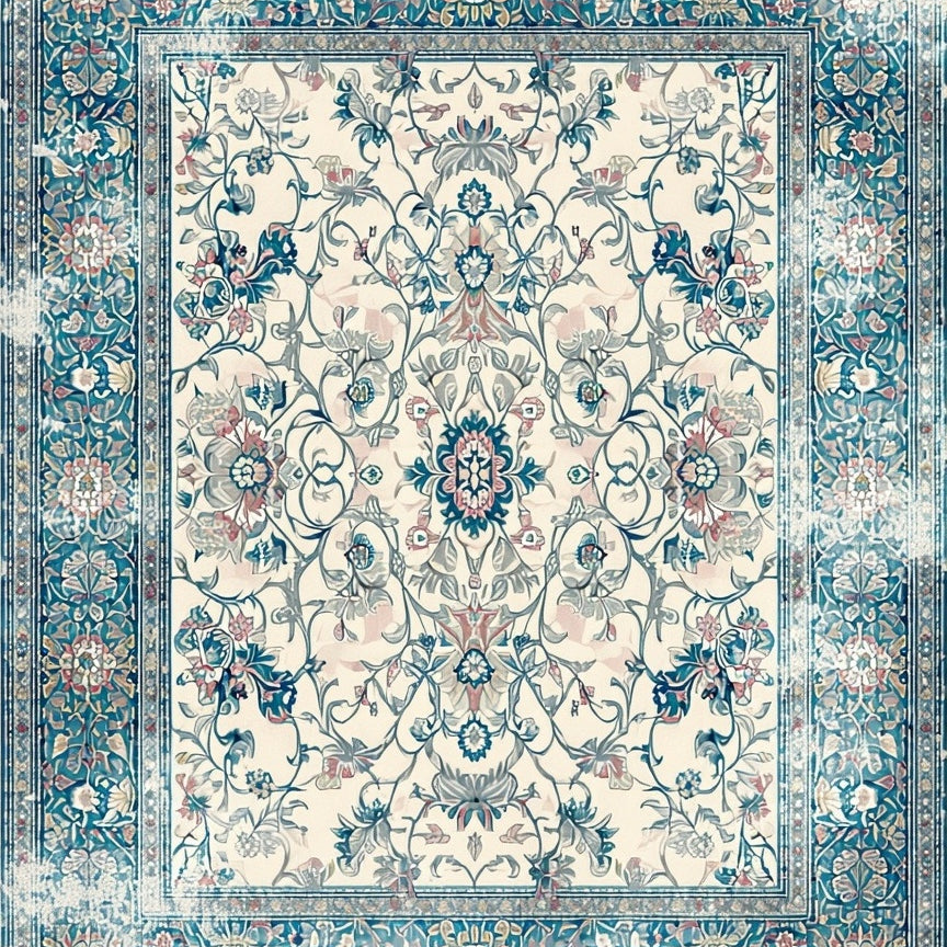 Elegant Floral Scrollwork Faded Blue Taupe Design(Ivory)
