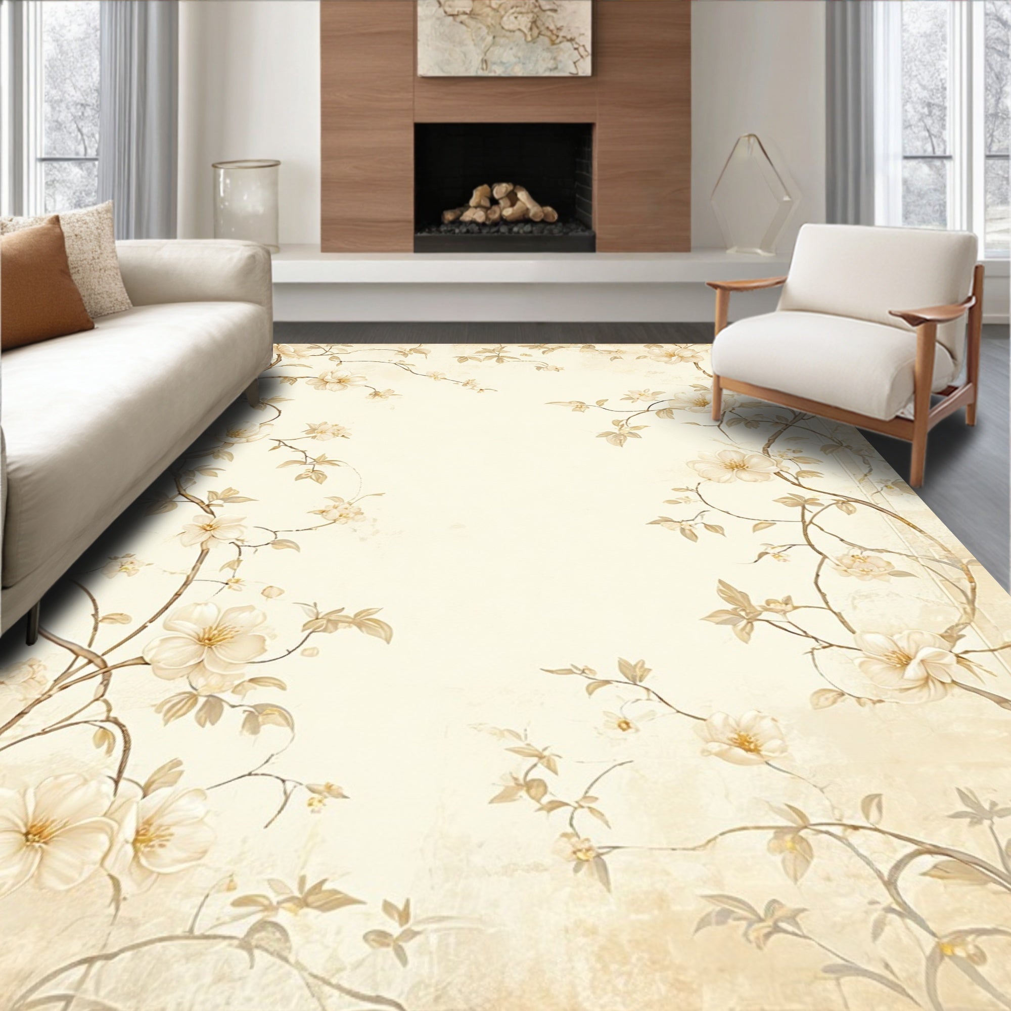 Elegant Floral with Non Slip Backing and Delicate Beige Blossoms(Beige)