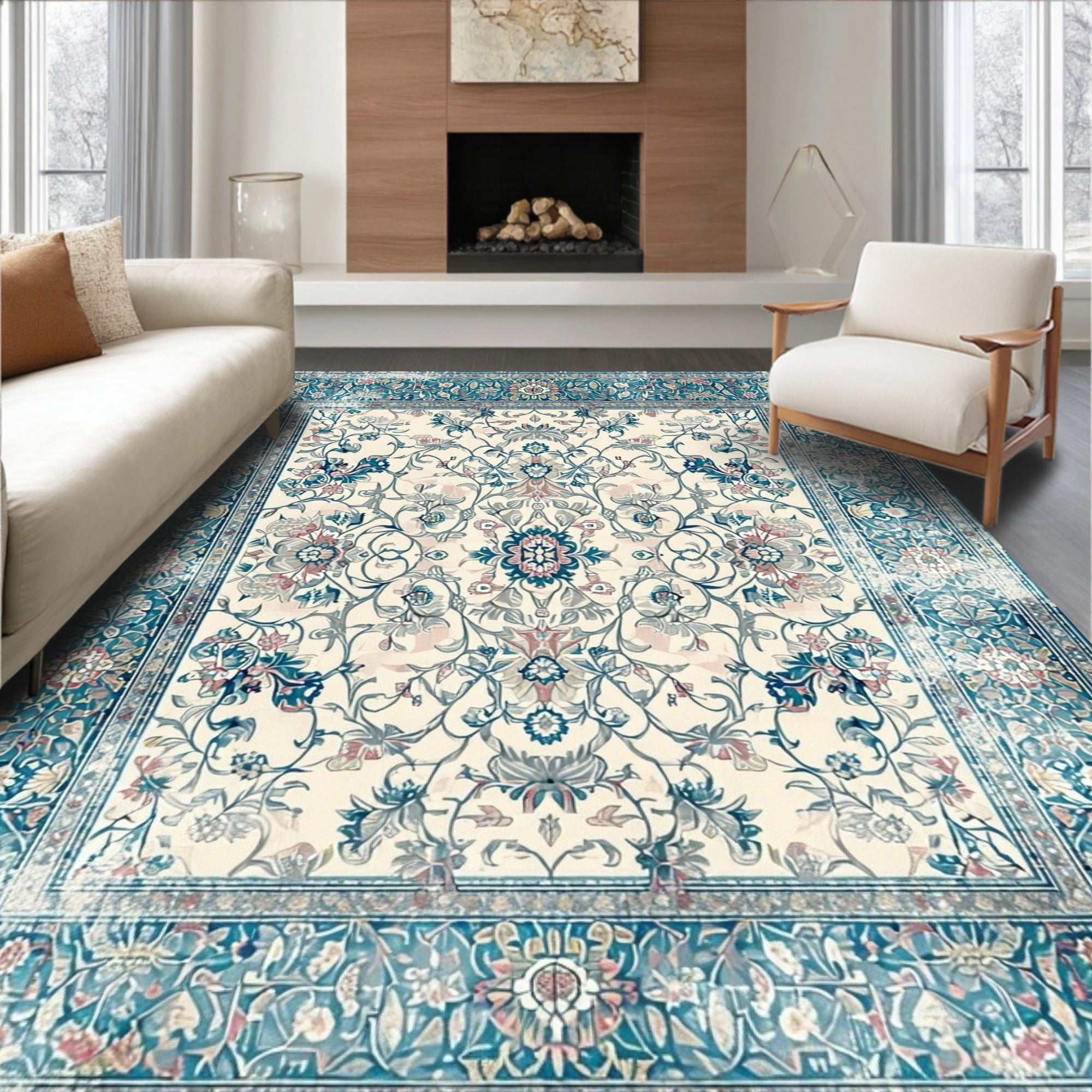 Elegant Floral Scrollwork Area for Indoor Decor(Beige)