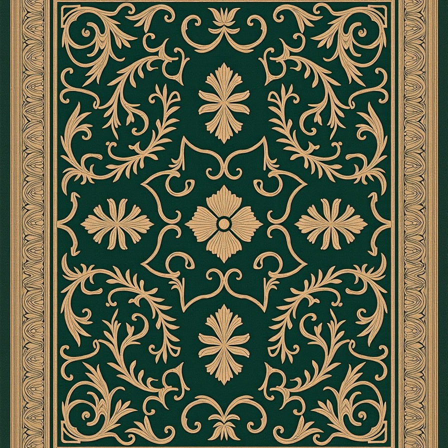 Elegant Interlocking Chevron with Ornate Floral Accents(Green)