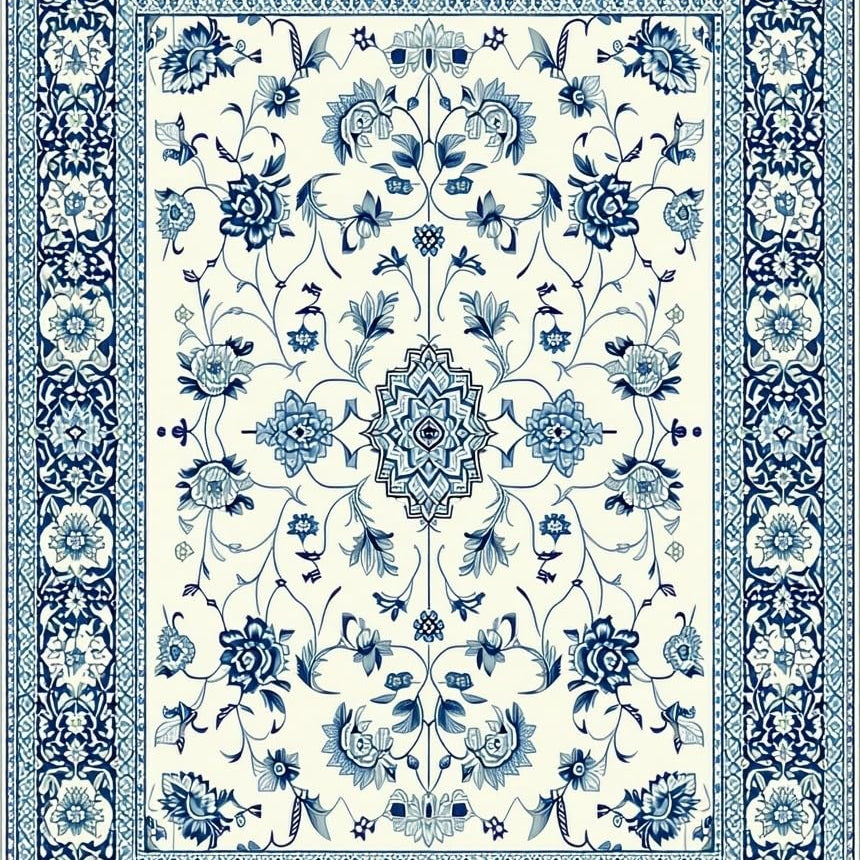 Elegant Interwoven Beige and Sky Blue Floral Design(Beige)
