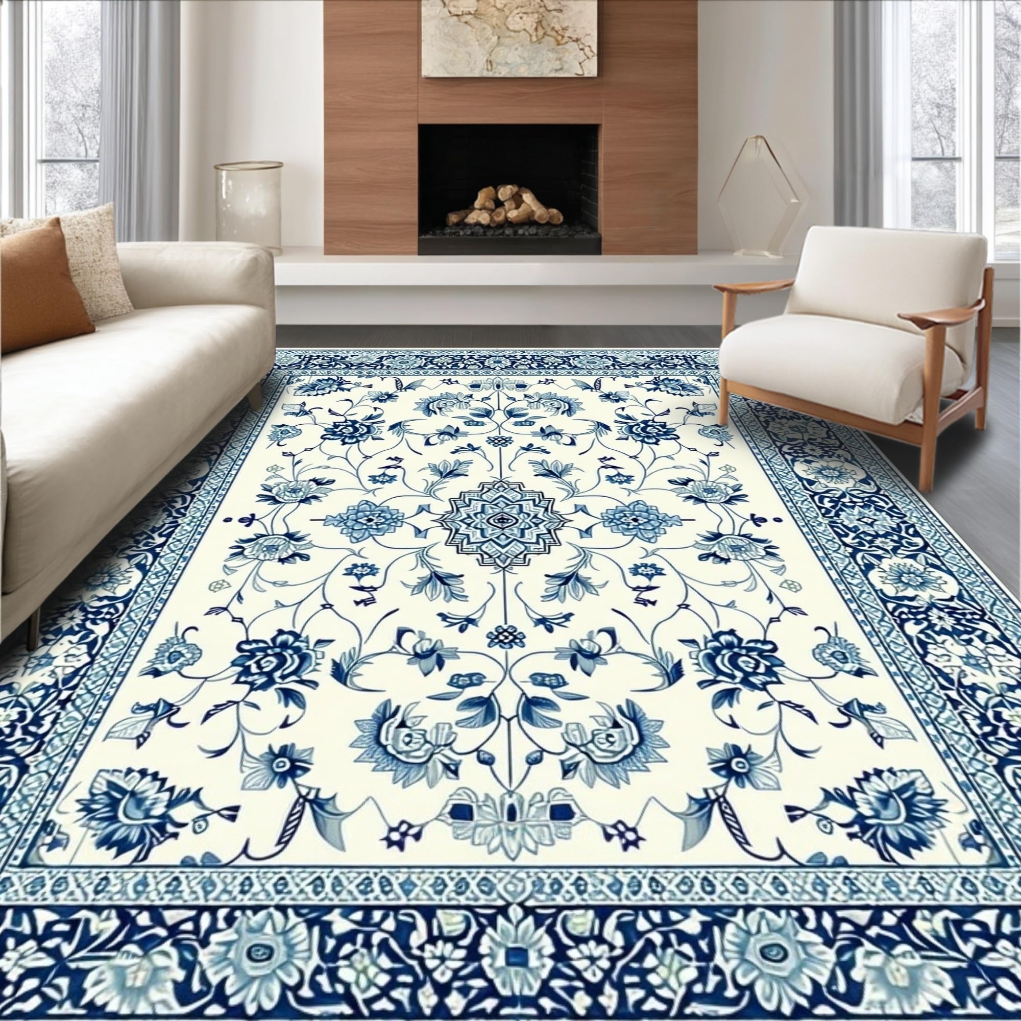Elegant Ivory Floor with Faded Floral Scrollwork(Beige)