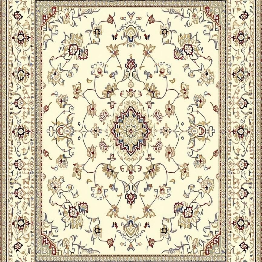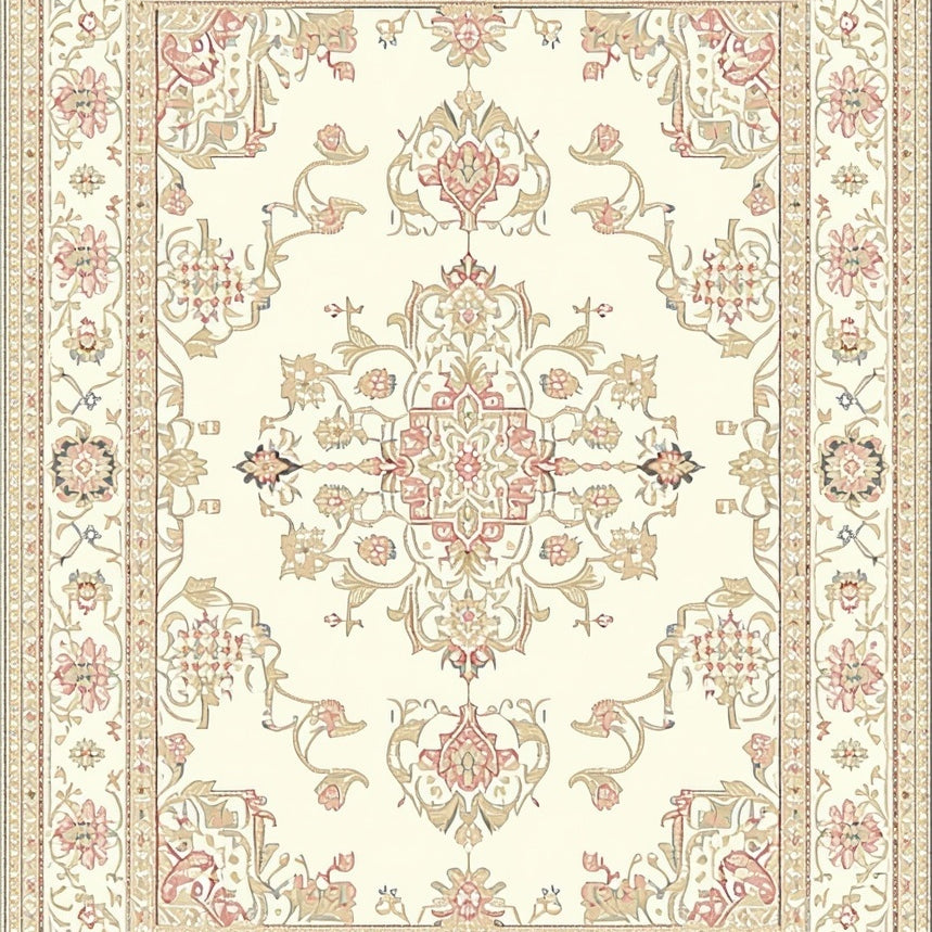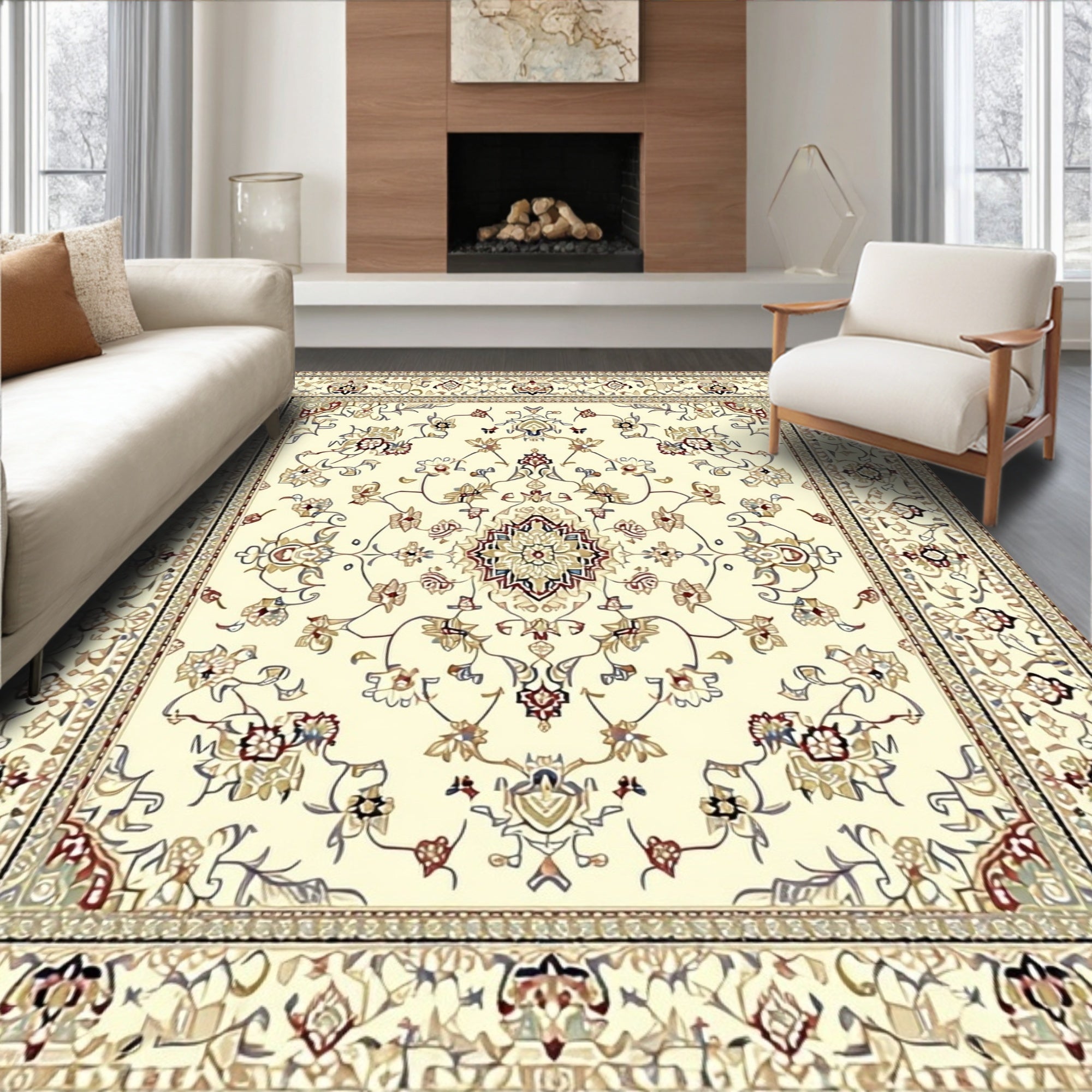 Elegant Micro Loop Beige Ivory Area with Classic Medallion Art(Beige)