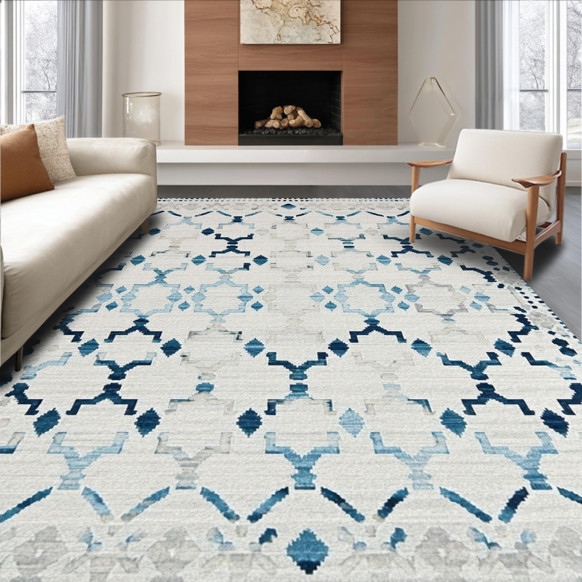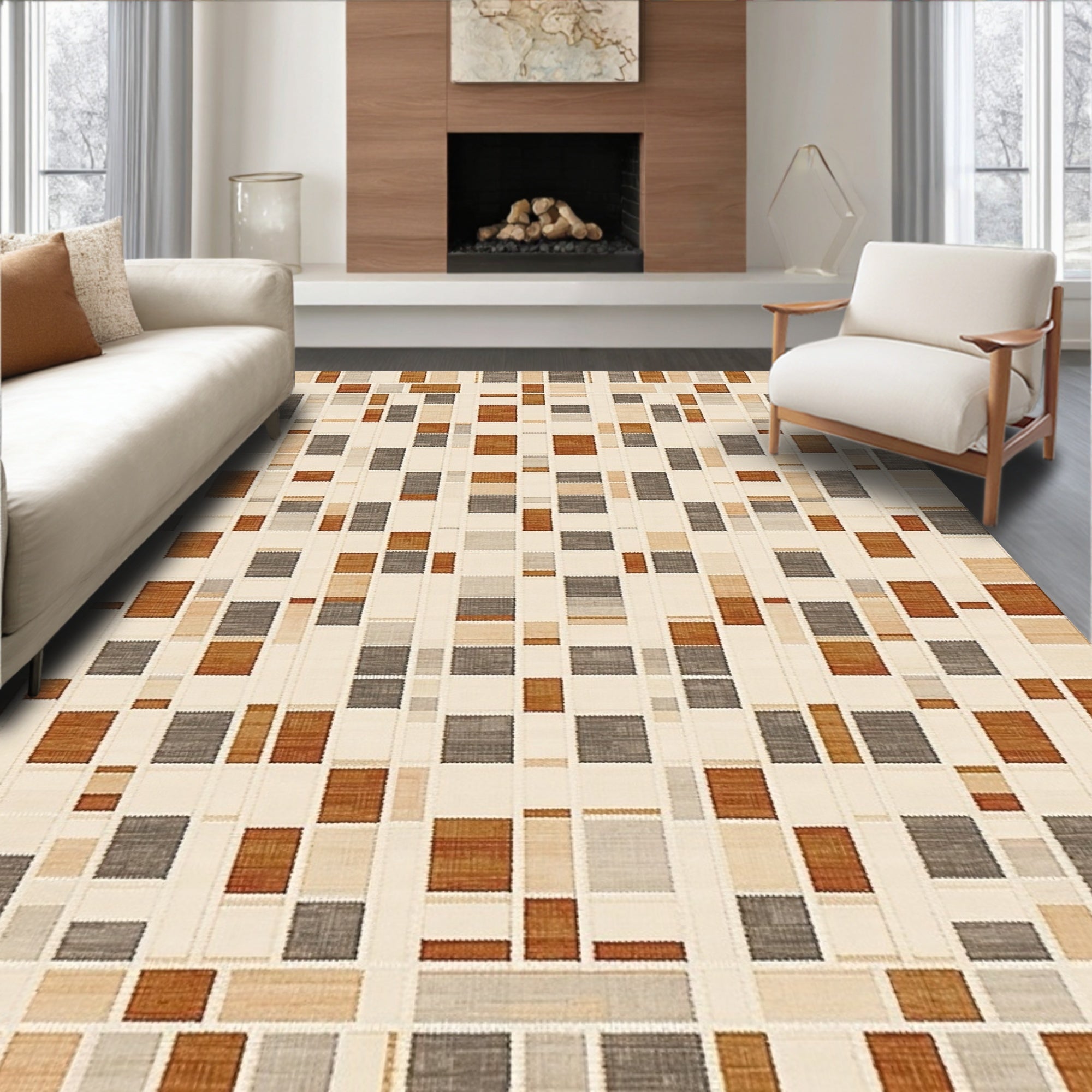 Elegant Neutral Tone Farmhouse Featuring Woven Diamond Motifs(Beige)