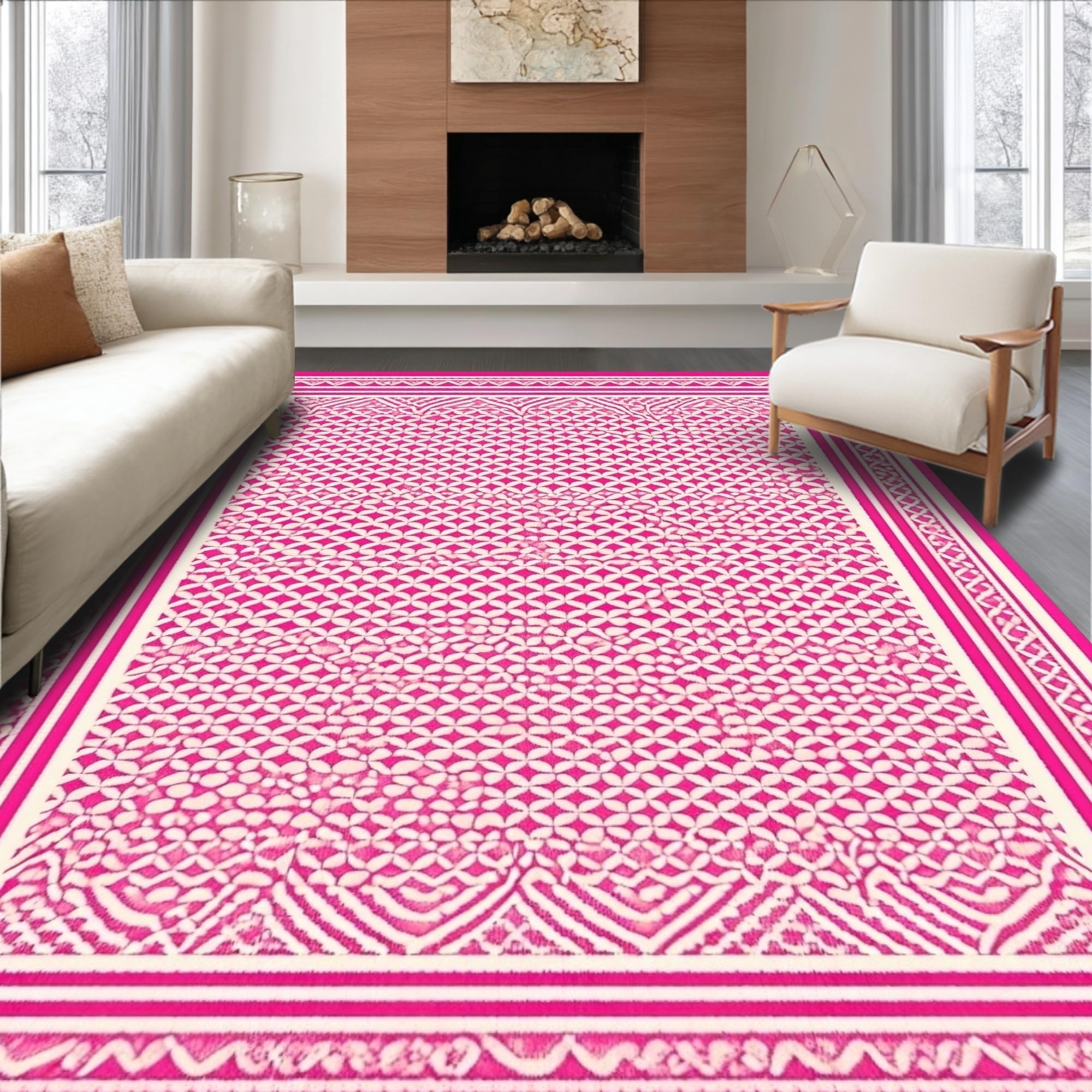 Elegant Non Slip with Beige Ground and Sage Green Ornate Geometric(Green)