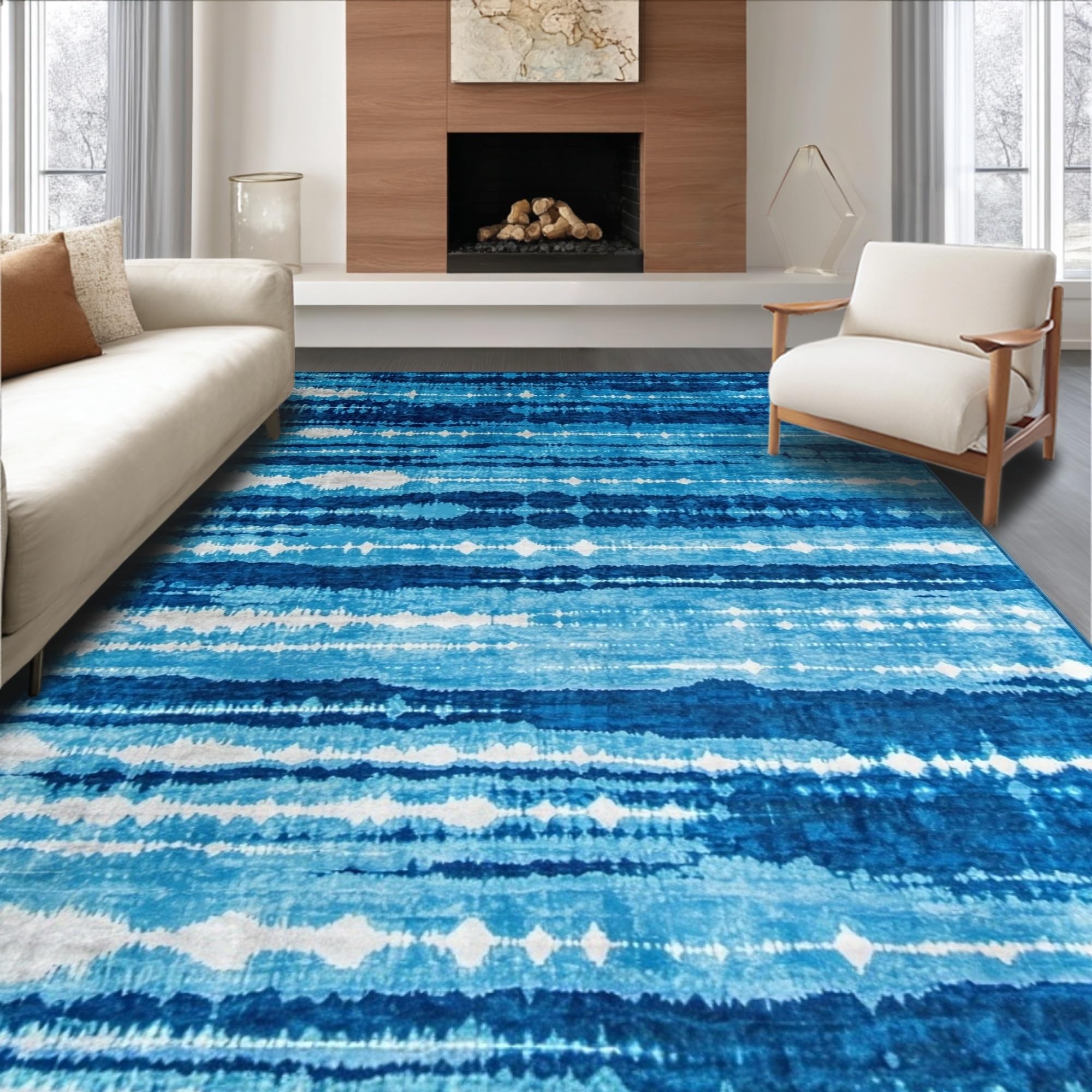 Elegant Ombre Throw with Distressed Artistic Blue and Beige Design(Blue)