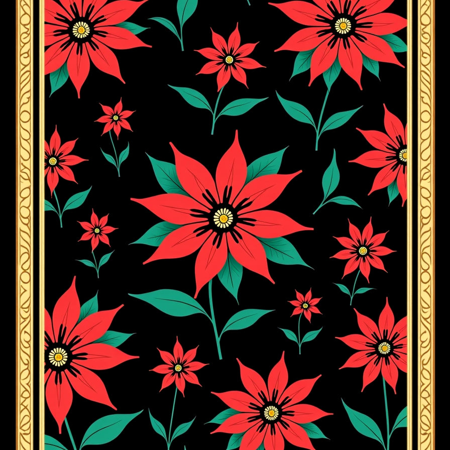 Elegant Poinsettia Blossom Medallion with Twisting Vine Details(Red)
