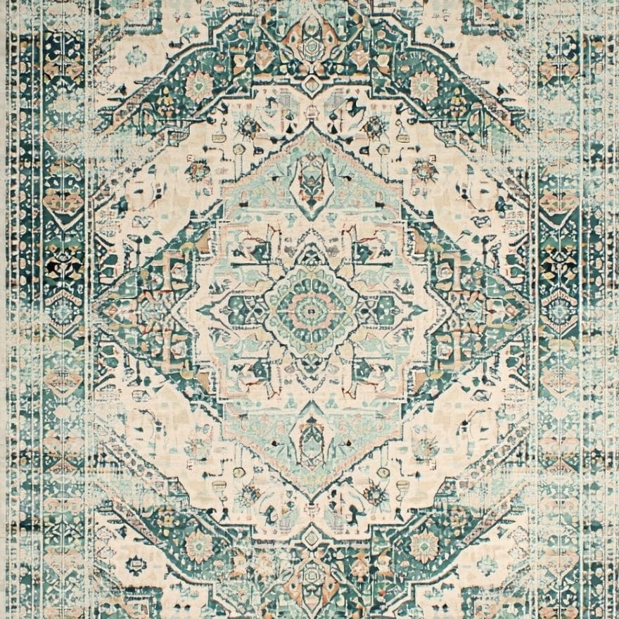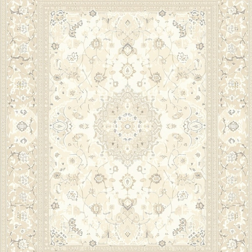 Elegant Scallop Floral Medallion – Beige Bordered for Refined Style(Beige)