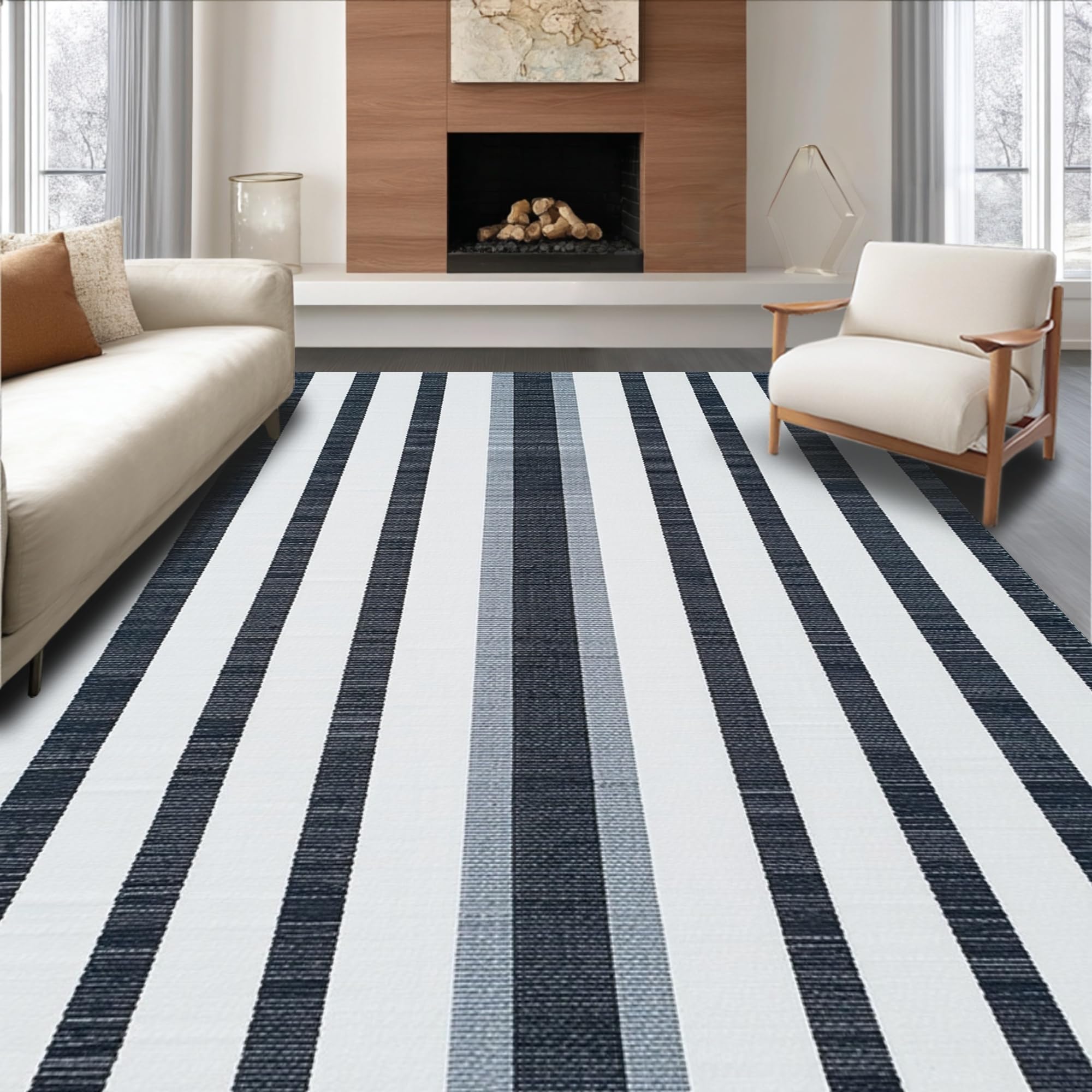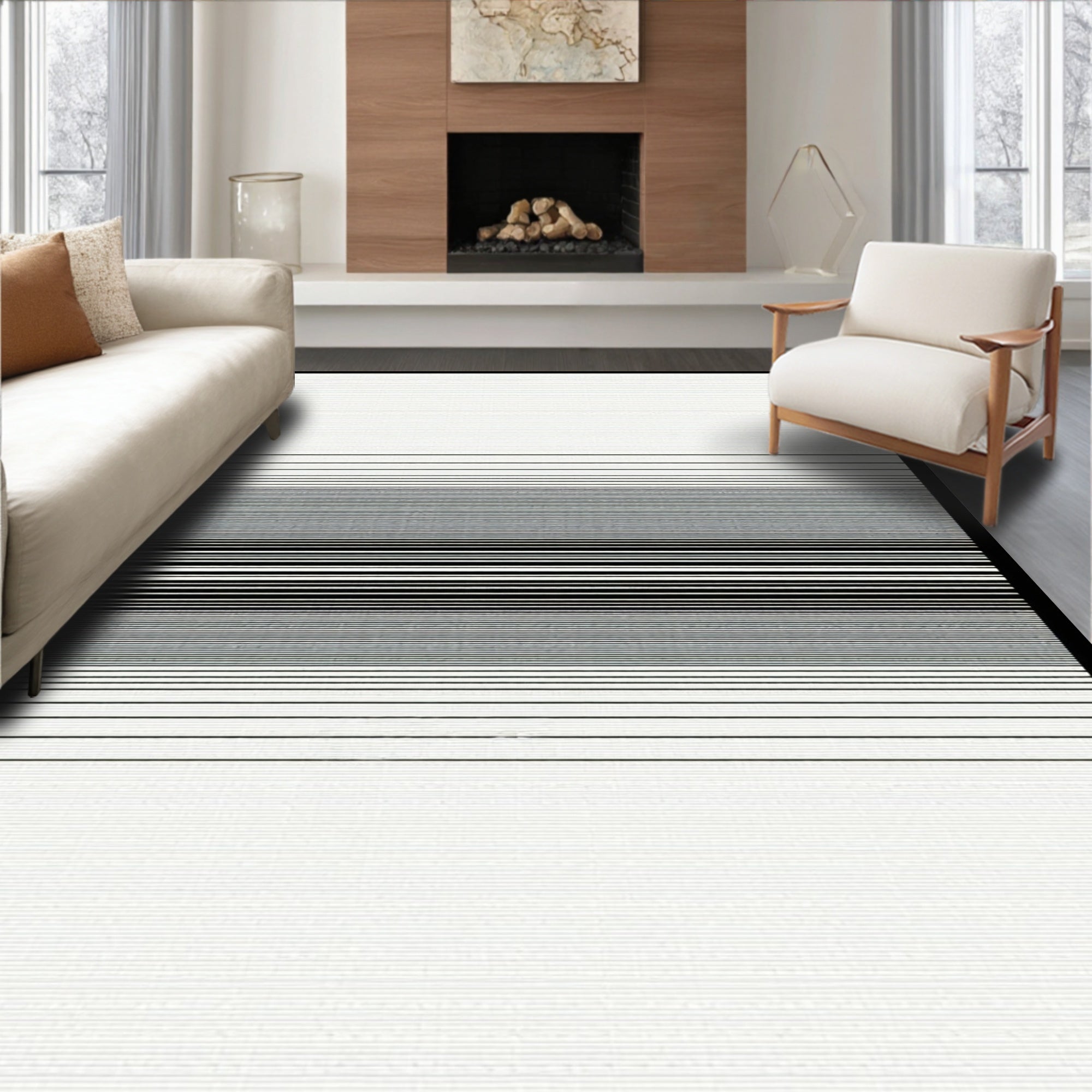 Elegant Striped Floor Mat for Modern Porches and Patios(Black)