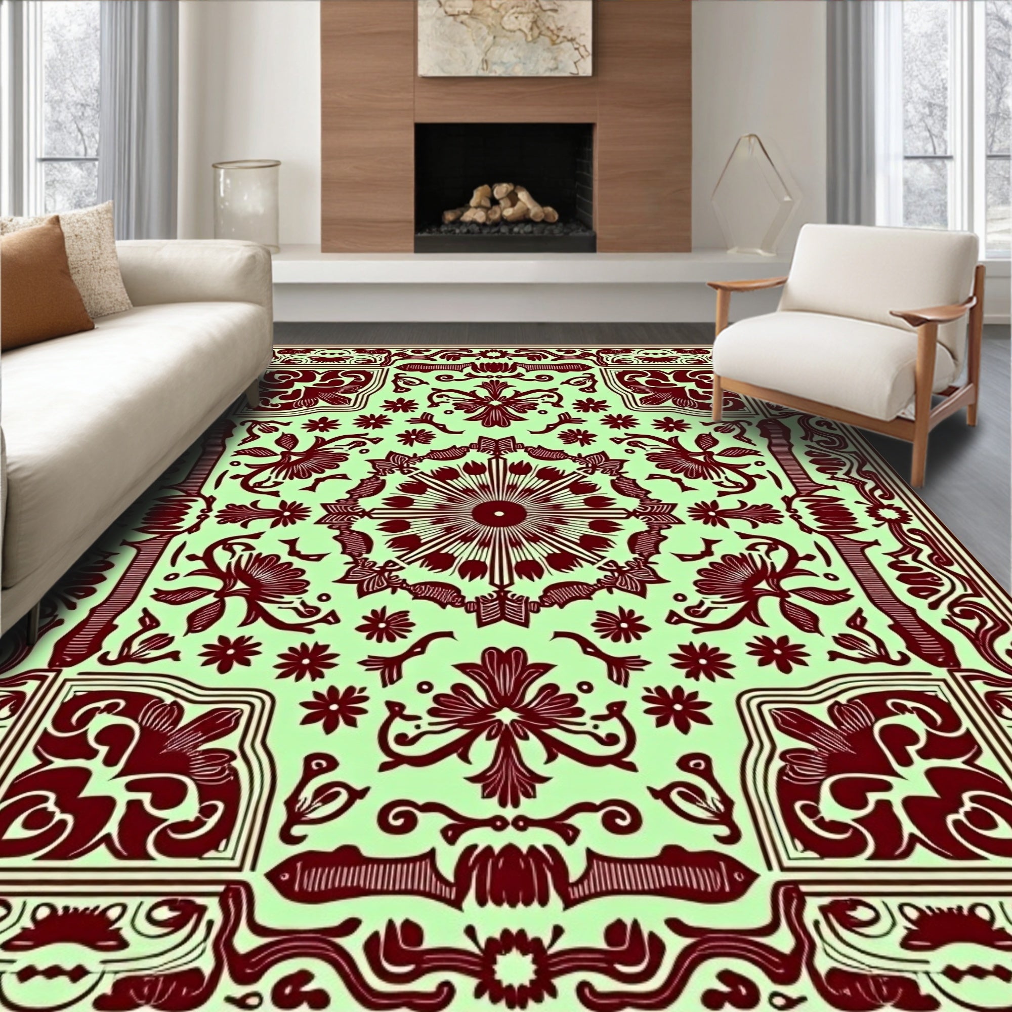 Elegant Swirl Floral Medallion Vintage Artistic Decorative Accent(Green)