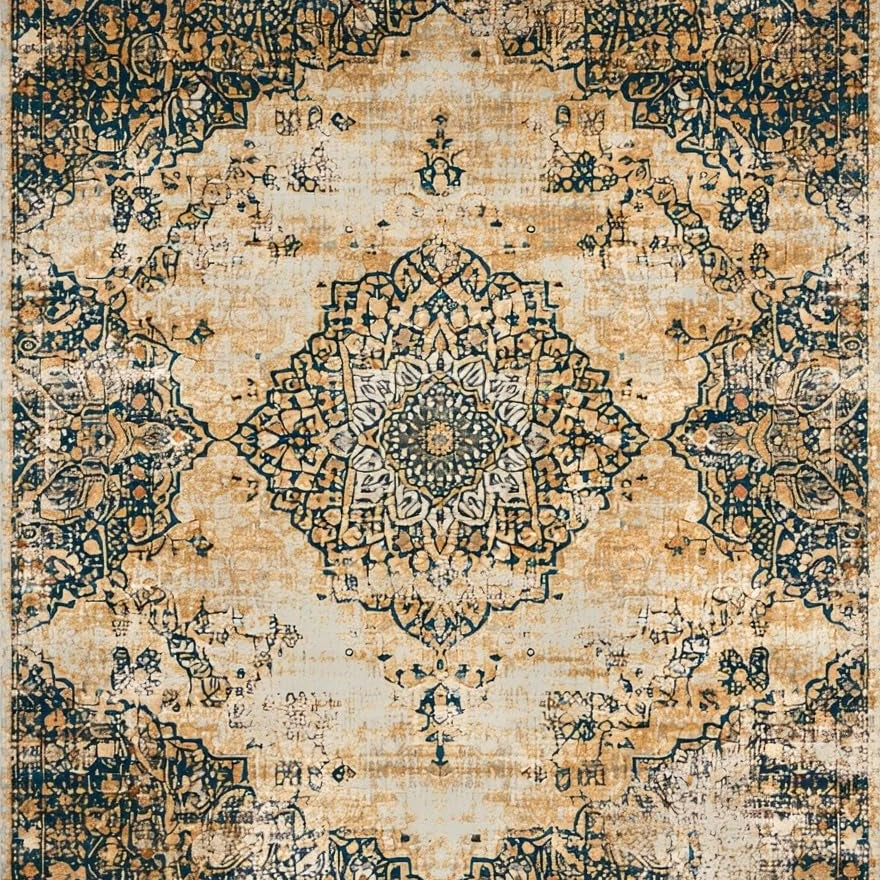 Elegant Vintage Inspired Area With Distressed Medallion Design(Ivory)