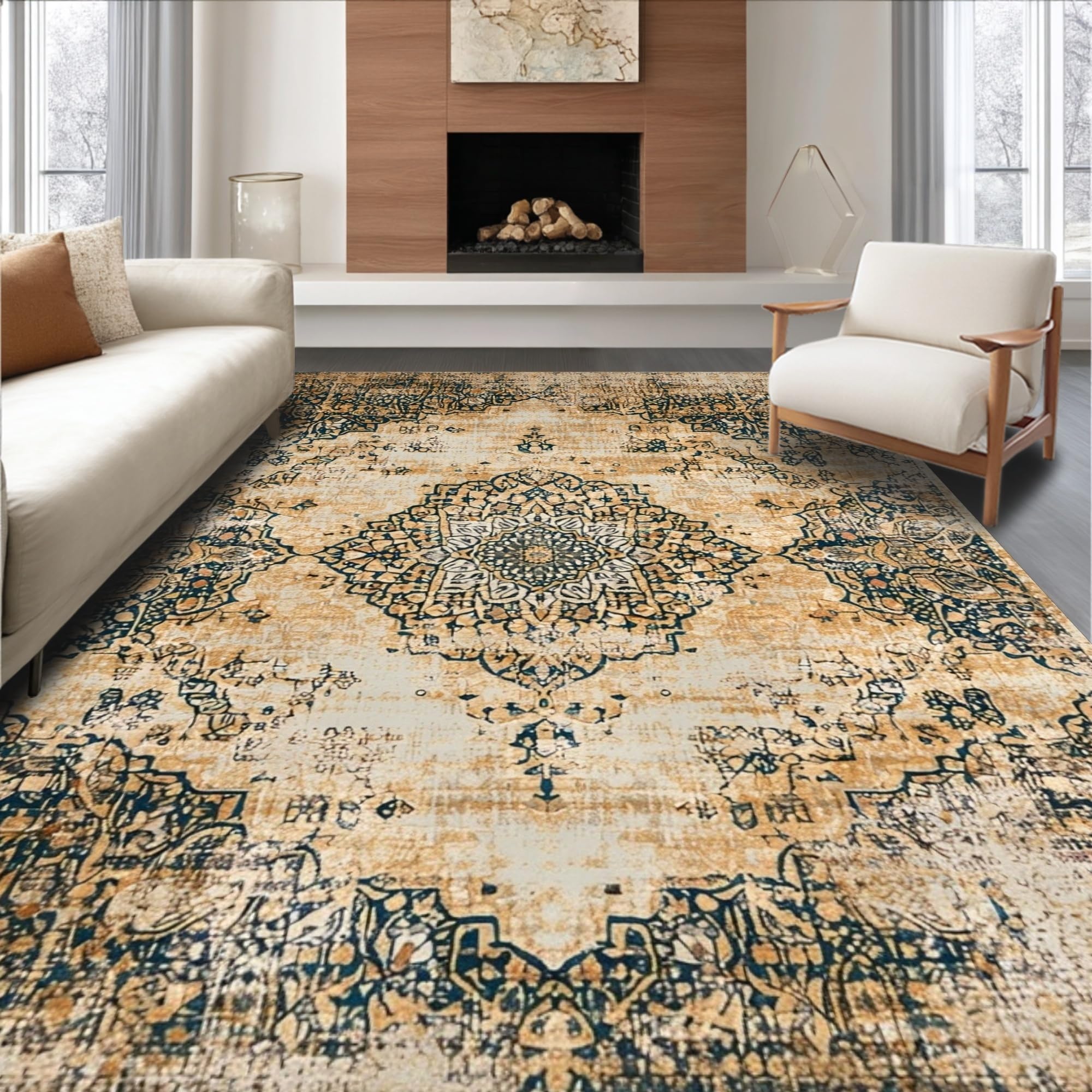 Elegant Vintage Inspired Area with Distressed Oriental Design(Beige)