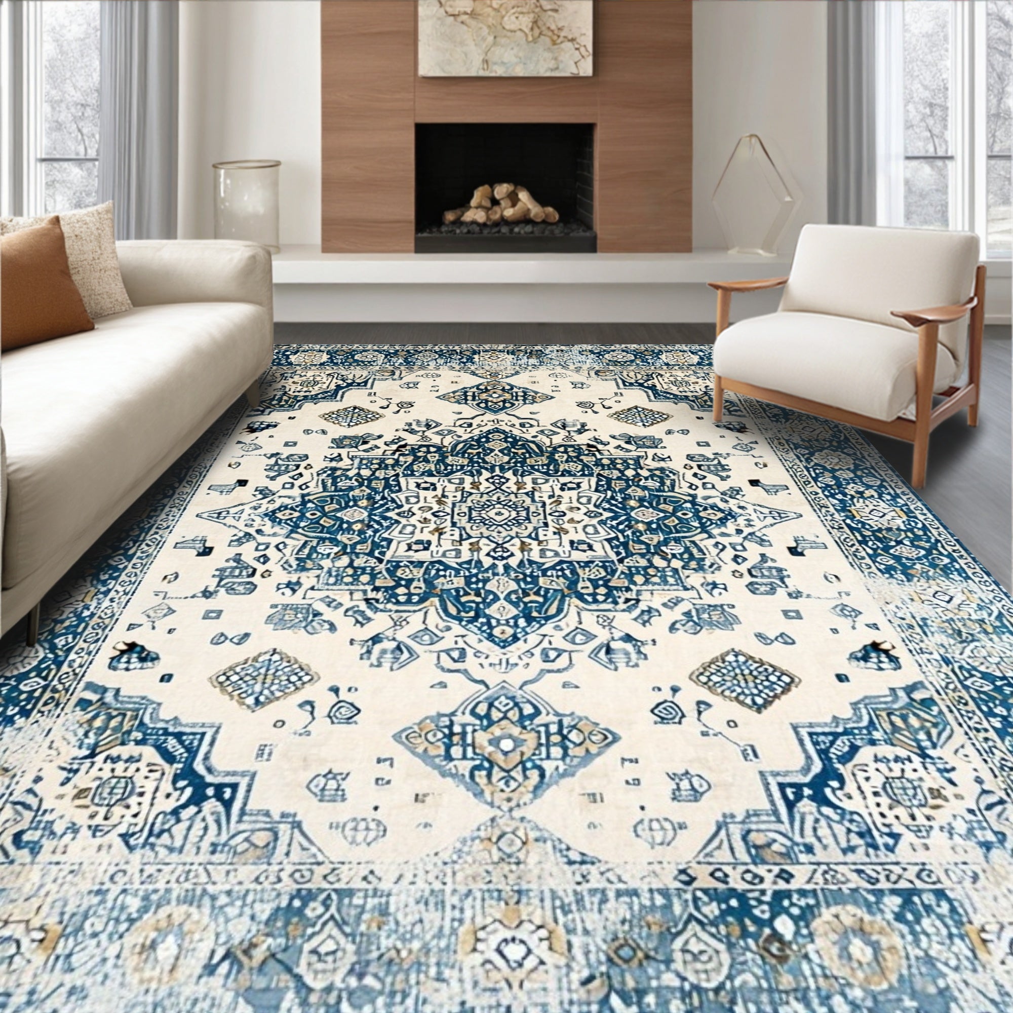 Elegant Vintage Inspired Area with Classic Floral and Neutral Tones(White)