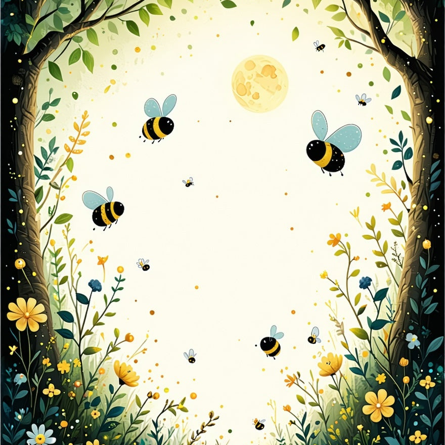 Enchanted Garden With Firefly Cricket Bumblebee Artwork(Green)