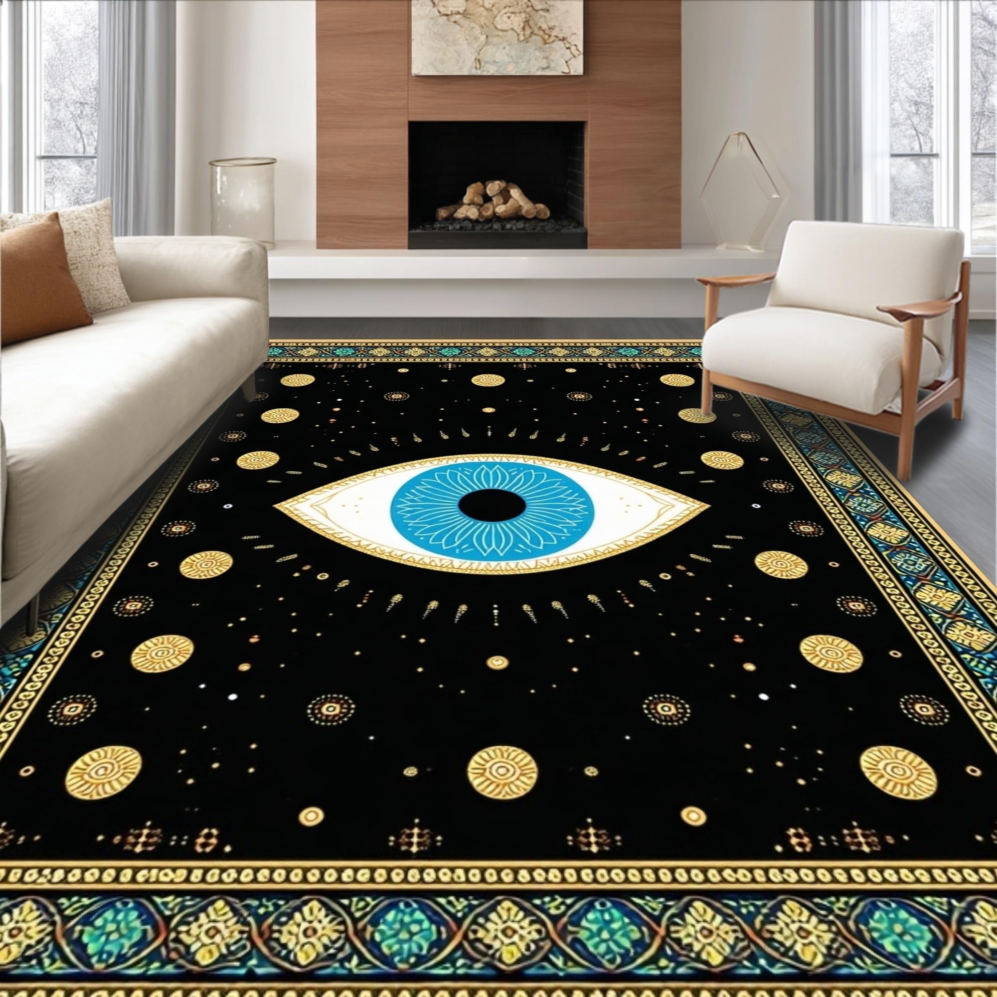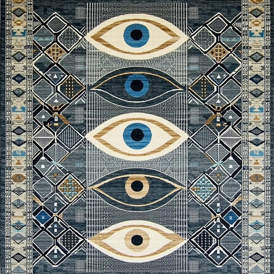 Ethnic Symbolic Patterned Floor Covering(Blue)