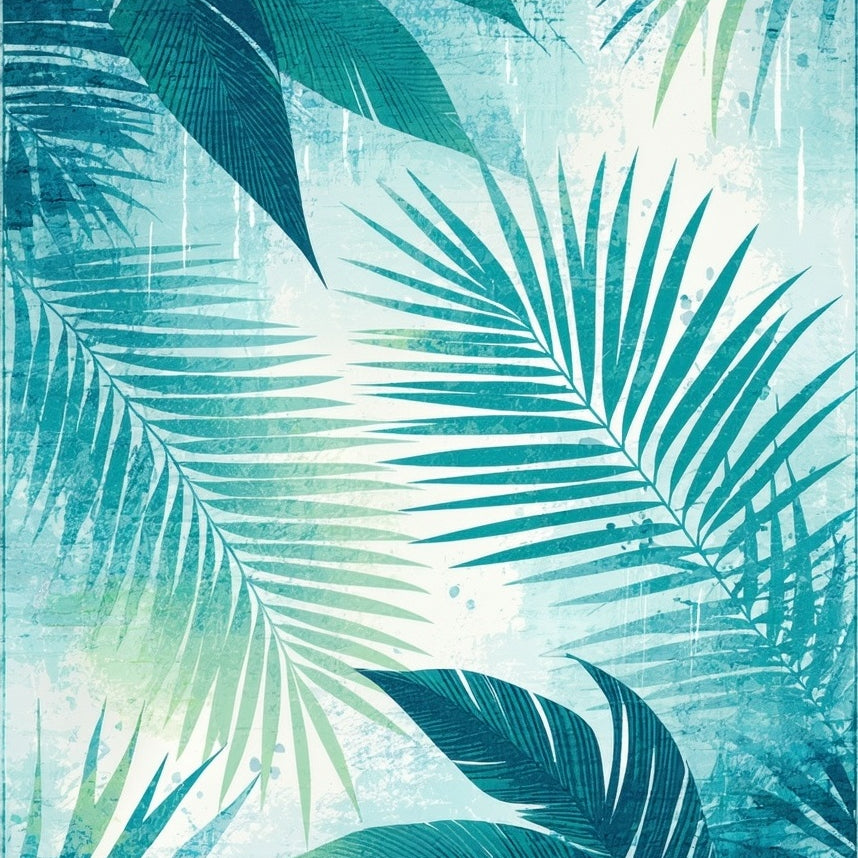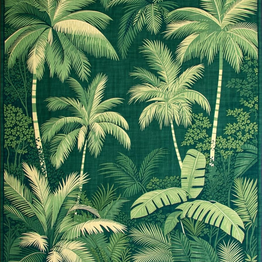 Exotic Palm Haven Area Green Beige Leafy(Green)