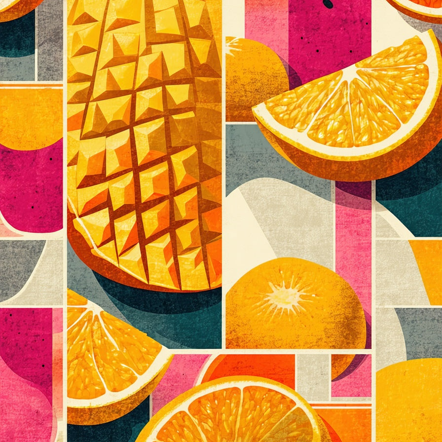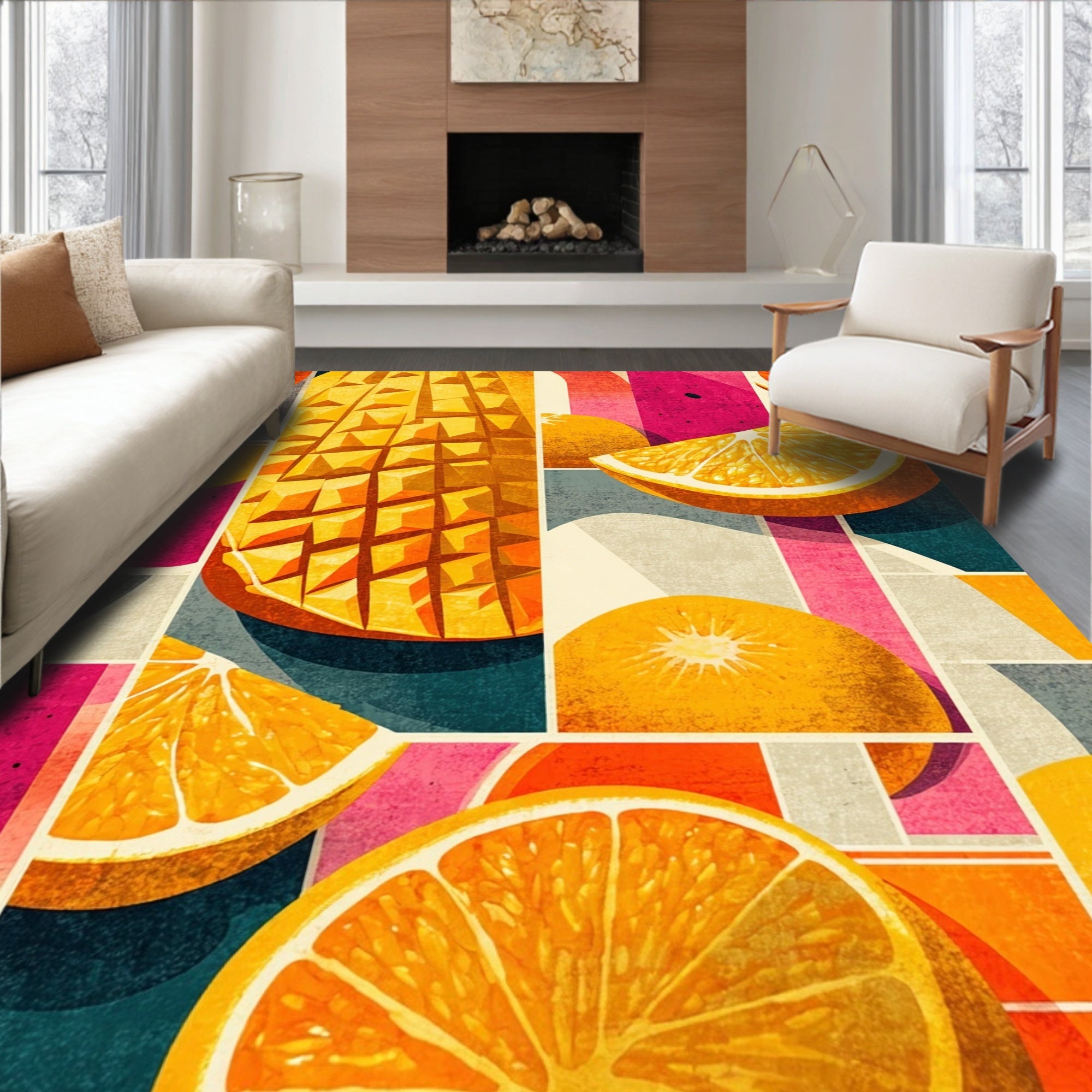 Exotic Fruit Fusion Area Rug Colorful Tropical Circle Floor Mat(Orange)