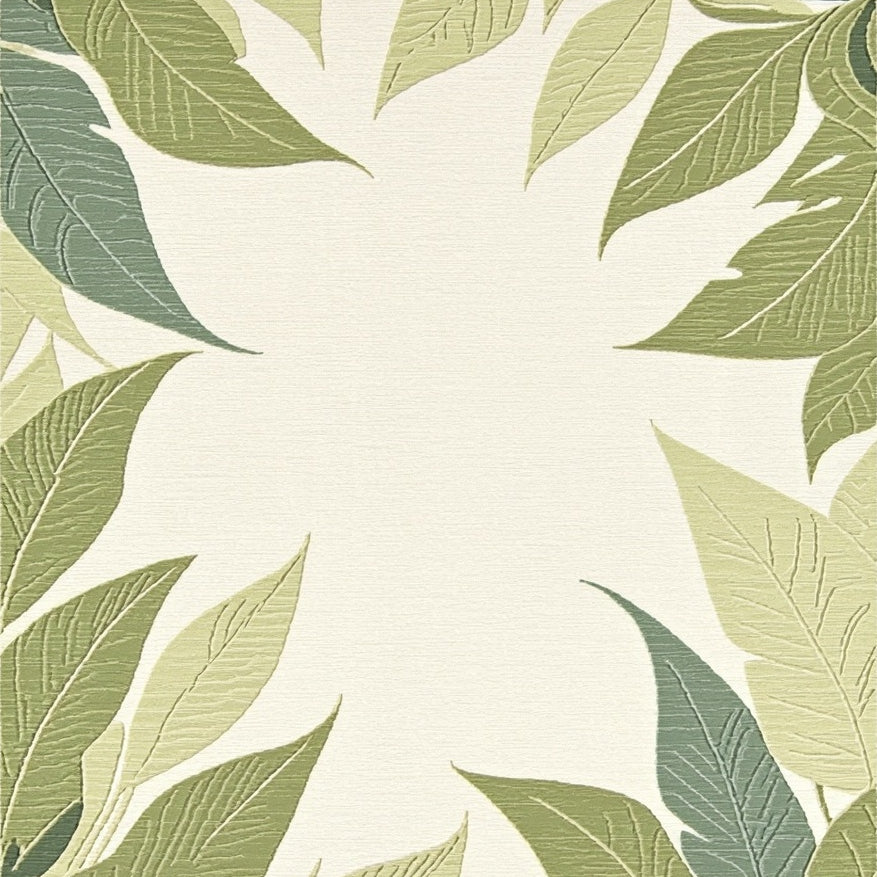 Exotic Leaf Motif Green Beige Botanical Garden Area(Beige)