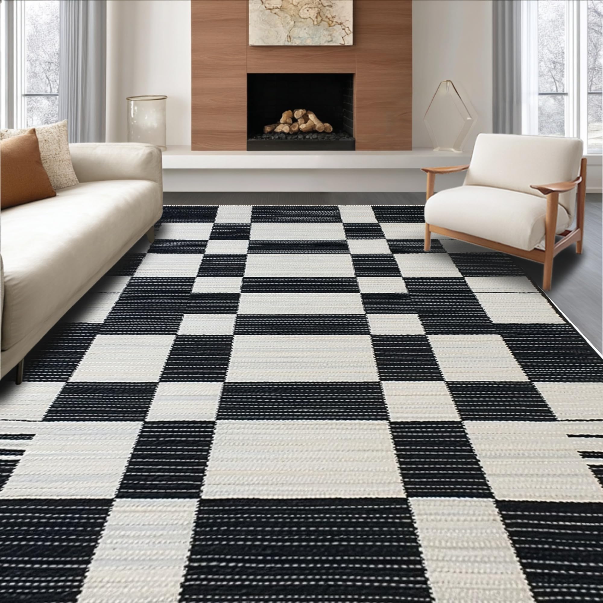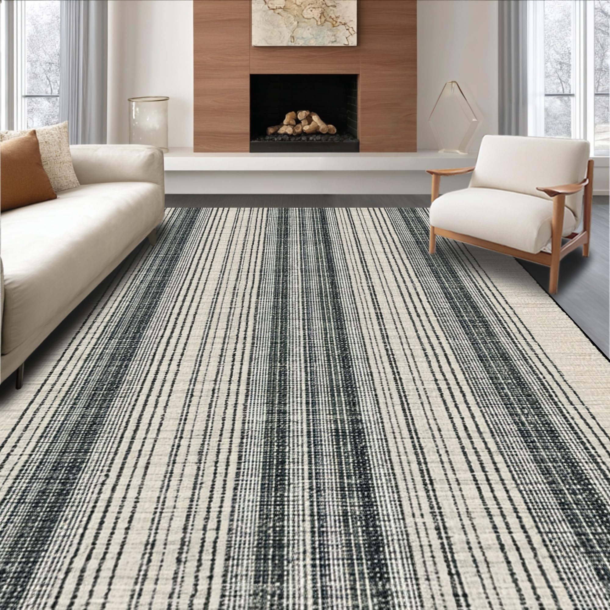 Fashionable Black and White Striped Perfect for Porch Entryway(Black)