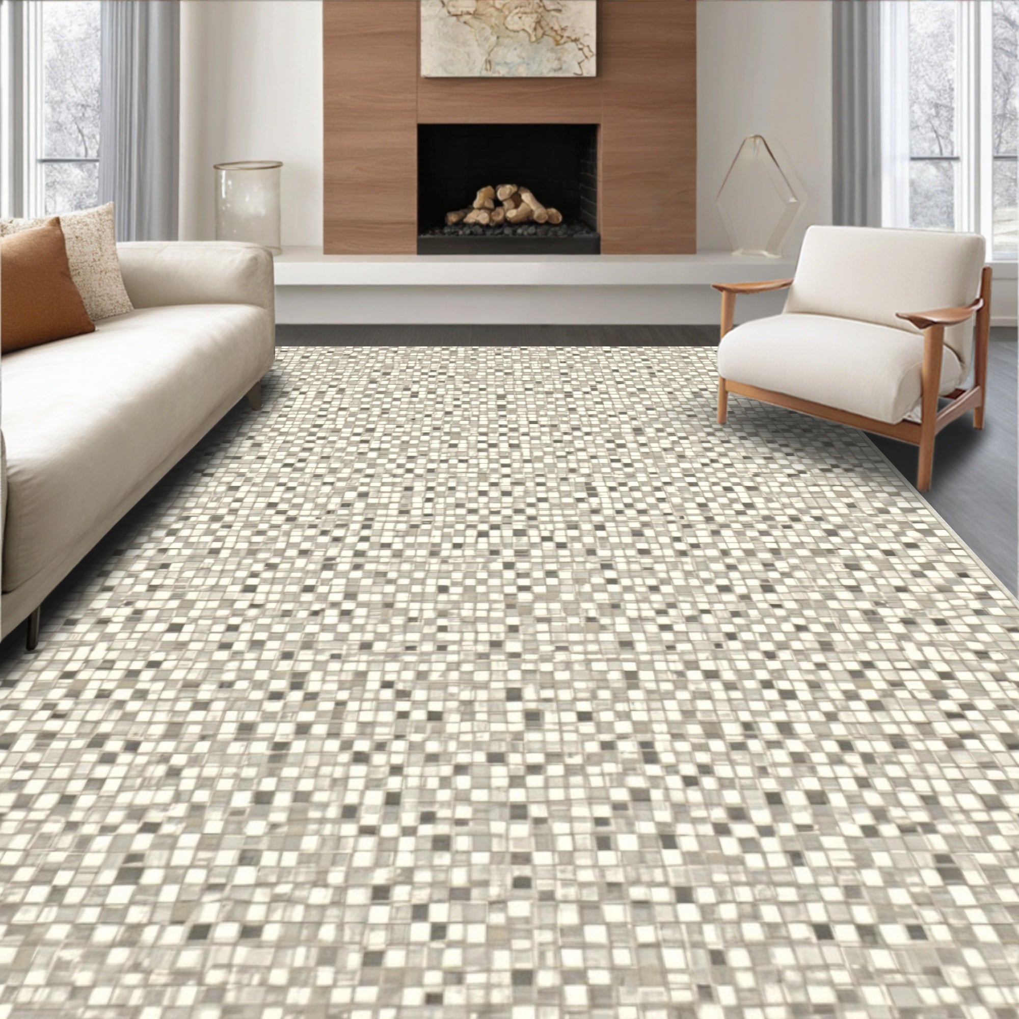 Fashion Forward Area with Unique Mosaic Design in Beige Tones(Beige)