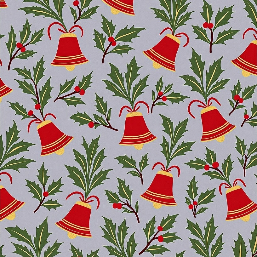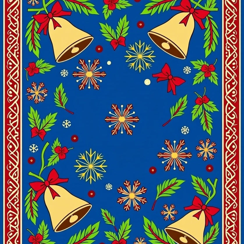 Festive Bells Motif with Snowflake and Holly Leaf Accents(Blue)