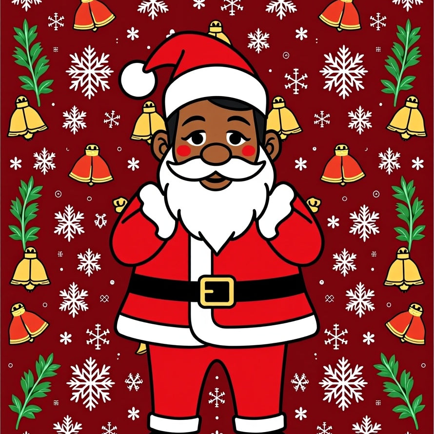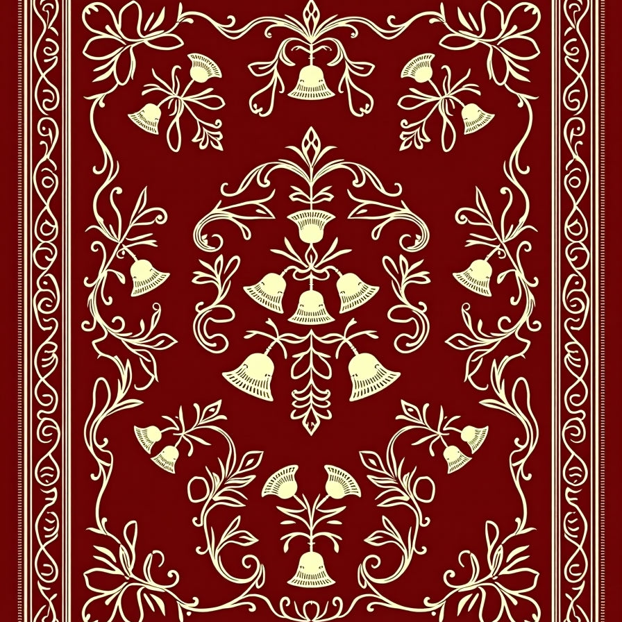 Festive Bell Motif with Holly Leaves and Snowflake Accents Design(Red)