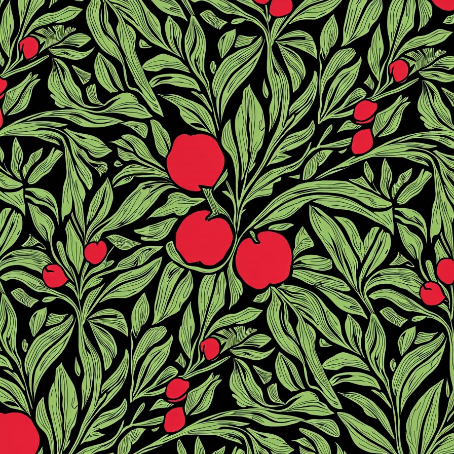 Festive Botanical Vintage Holiday Tapestry(Red)