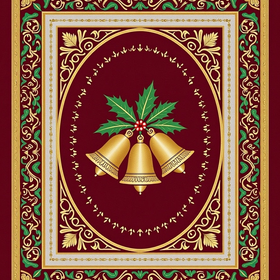 Festive Bell Motif with Holly Leaf Accents Semi Circular Design(Beige)