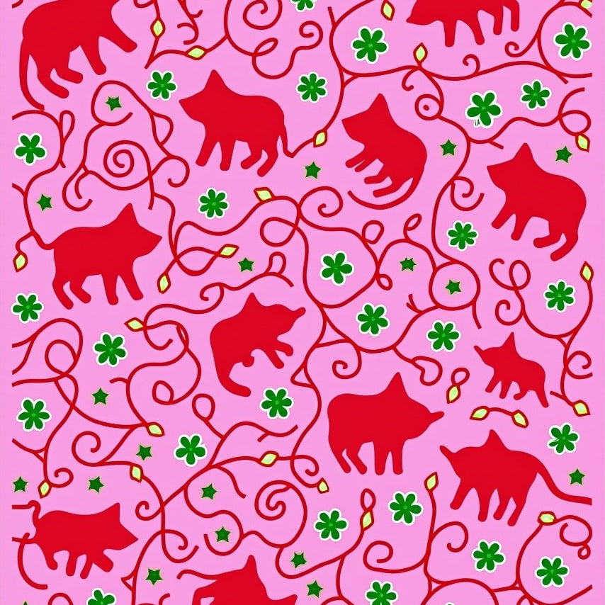 Festive Cat Parade with Twinkling Ornament Motifs(Pink)