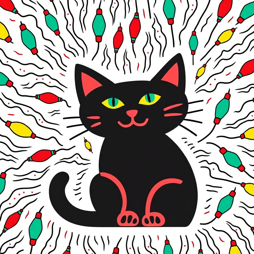 Festive Cat with Twinkling Bulb and Playful Details(Black)