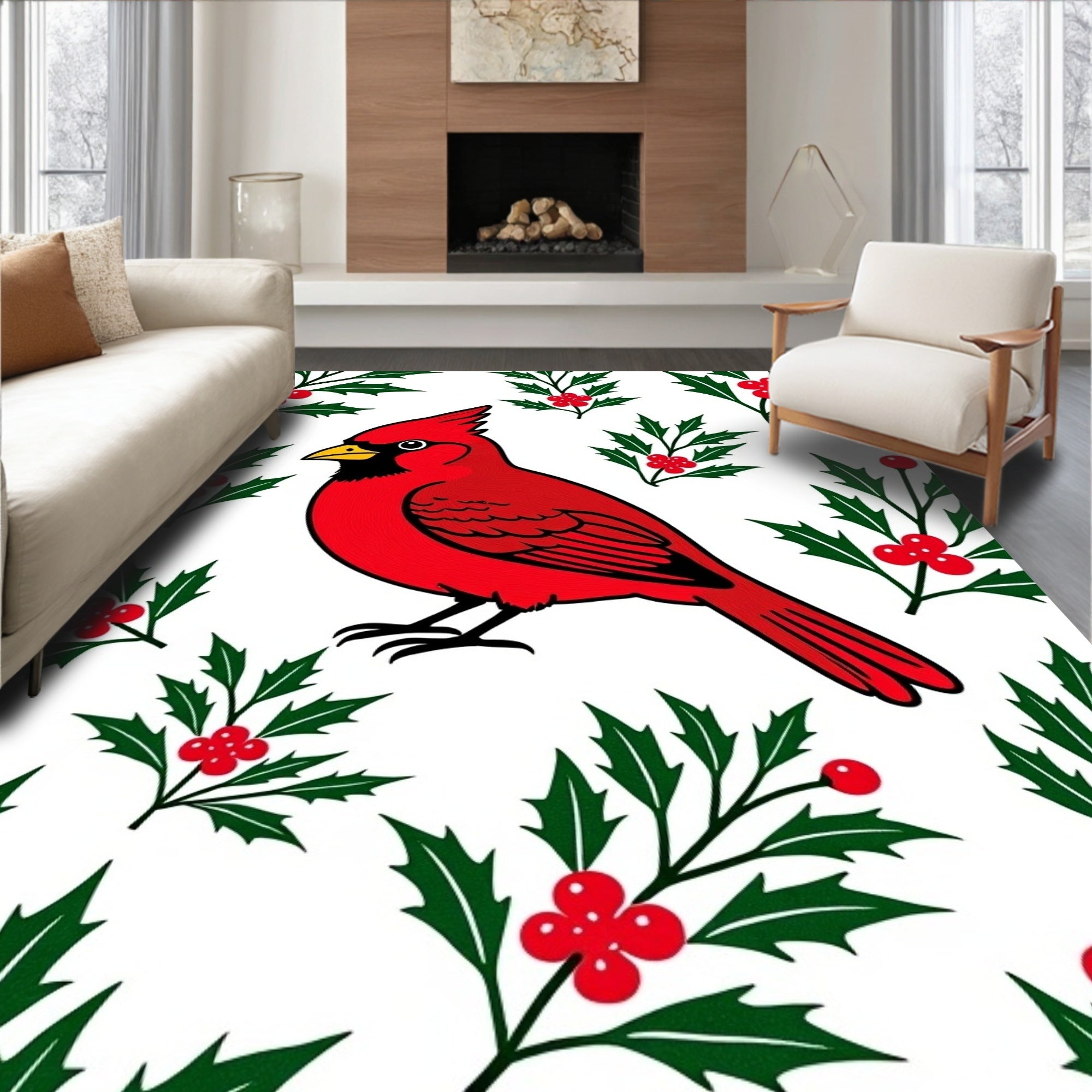 Festive Cardinal Perched Among Holly Branch Winter Scene(Red)