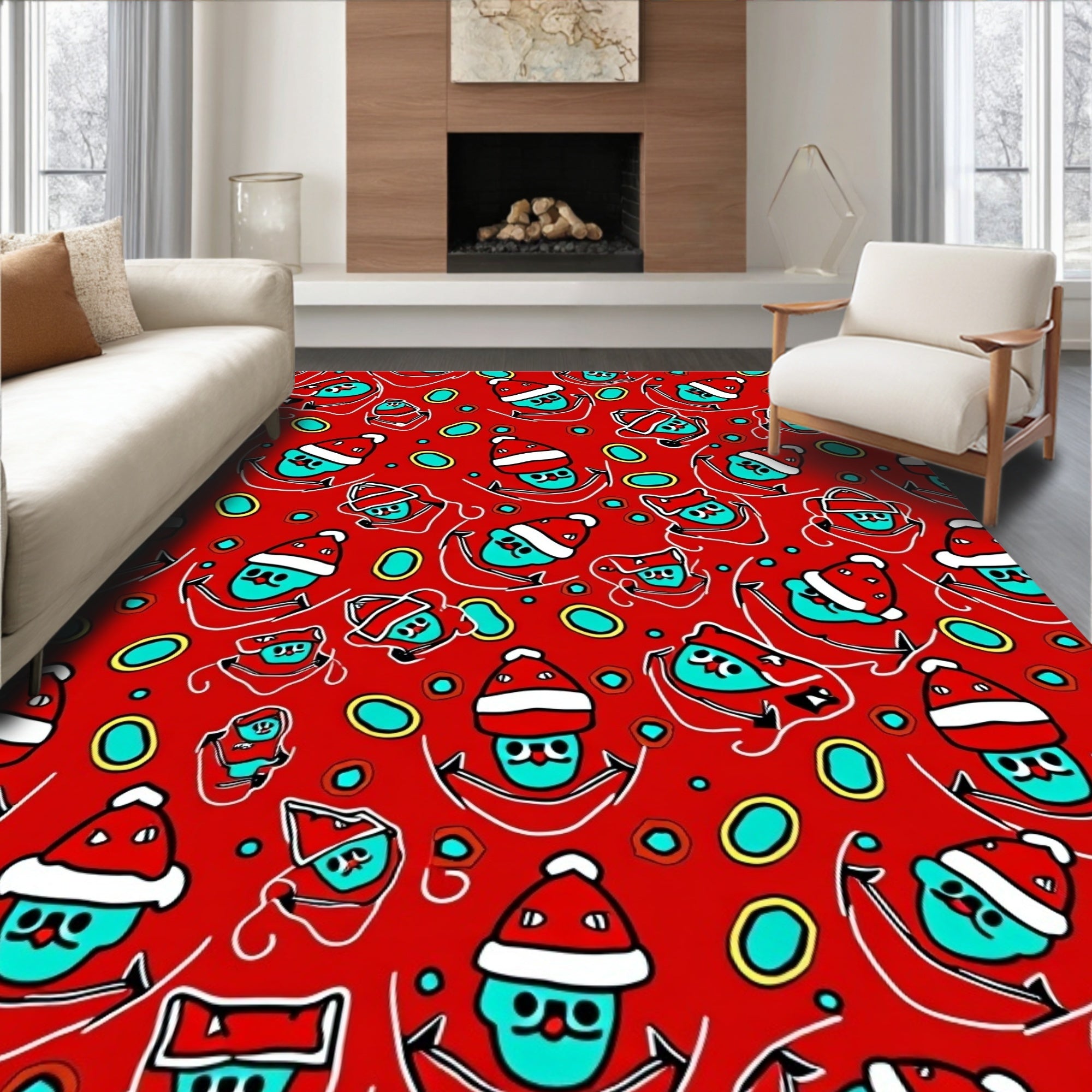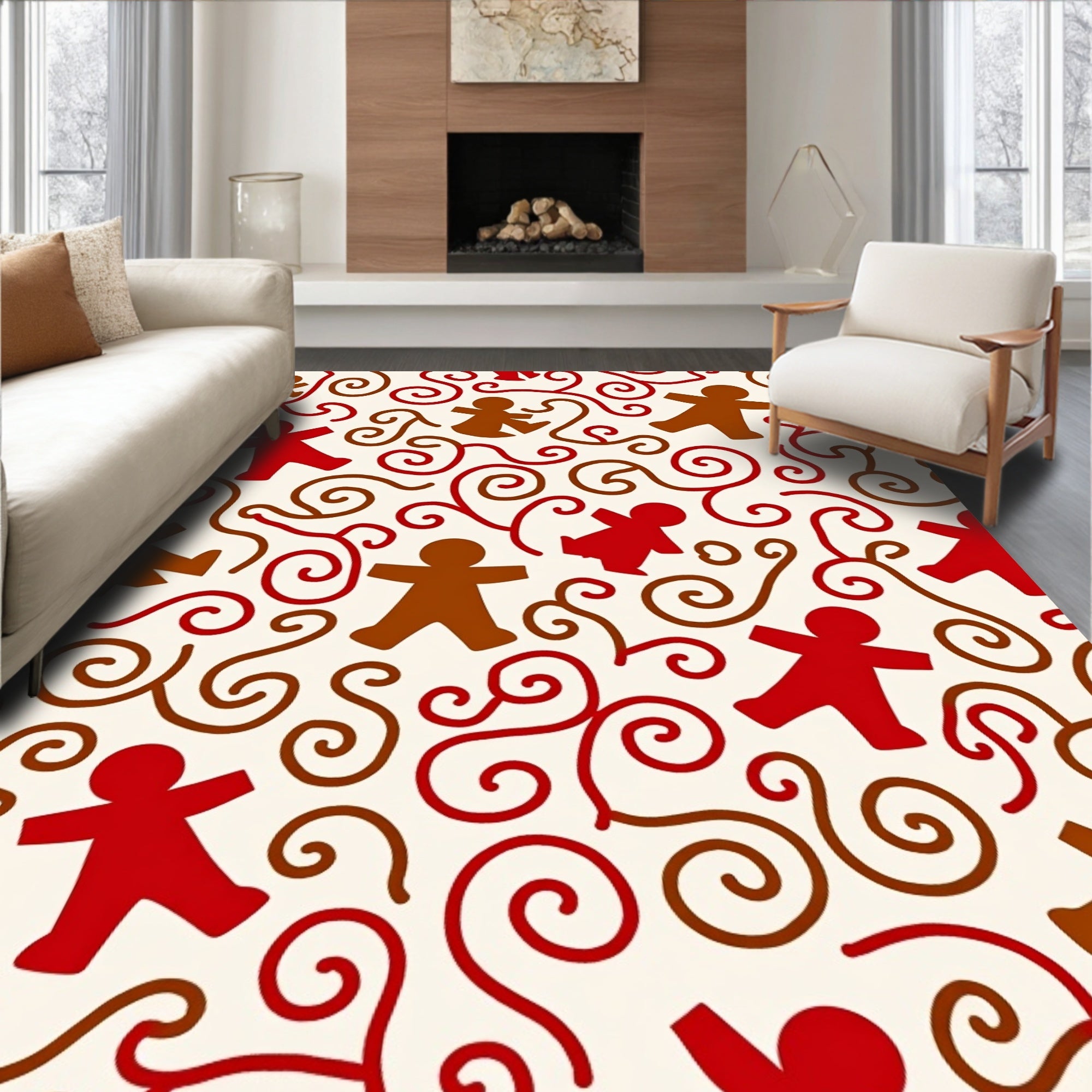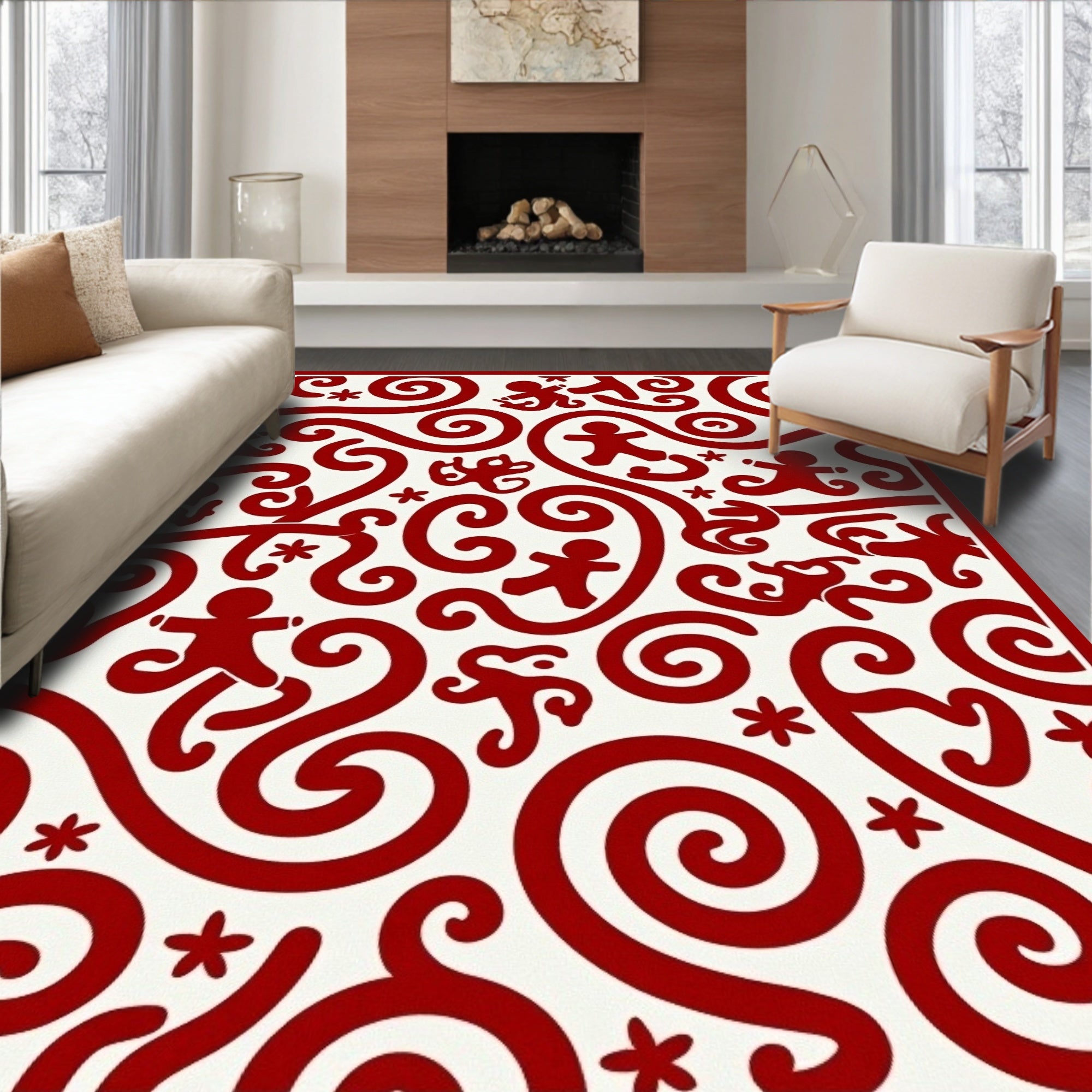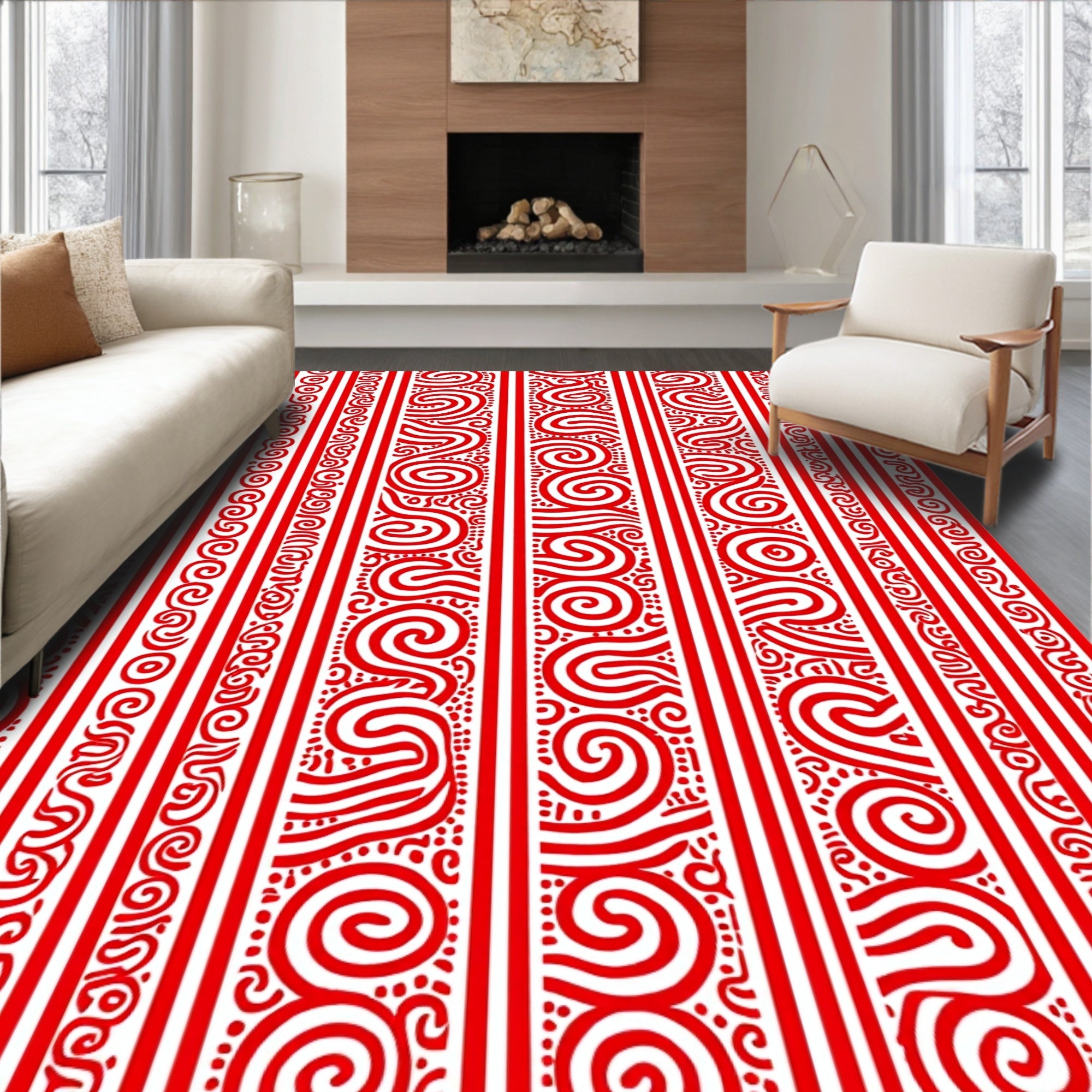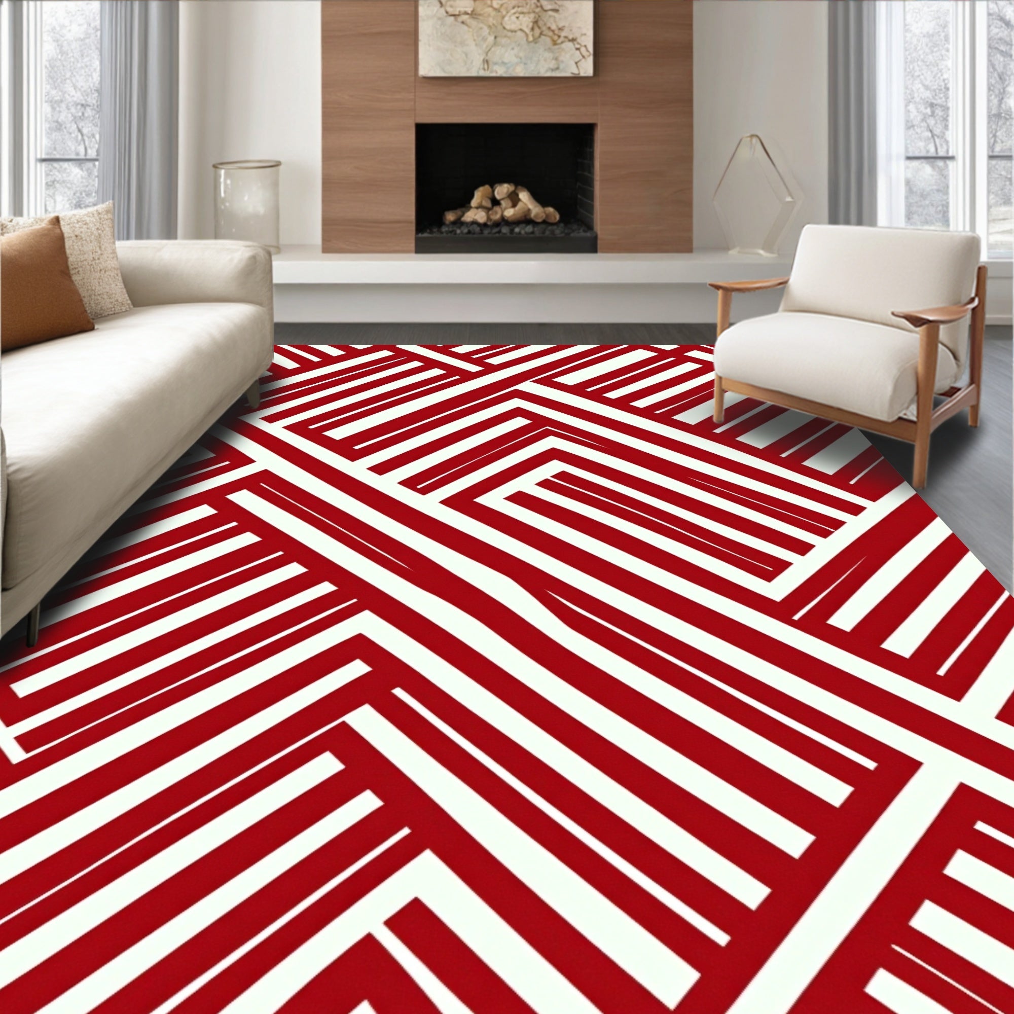 Festive Cane Stripe Geometric Floor Covering(Red)
