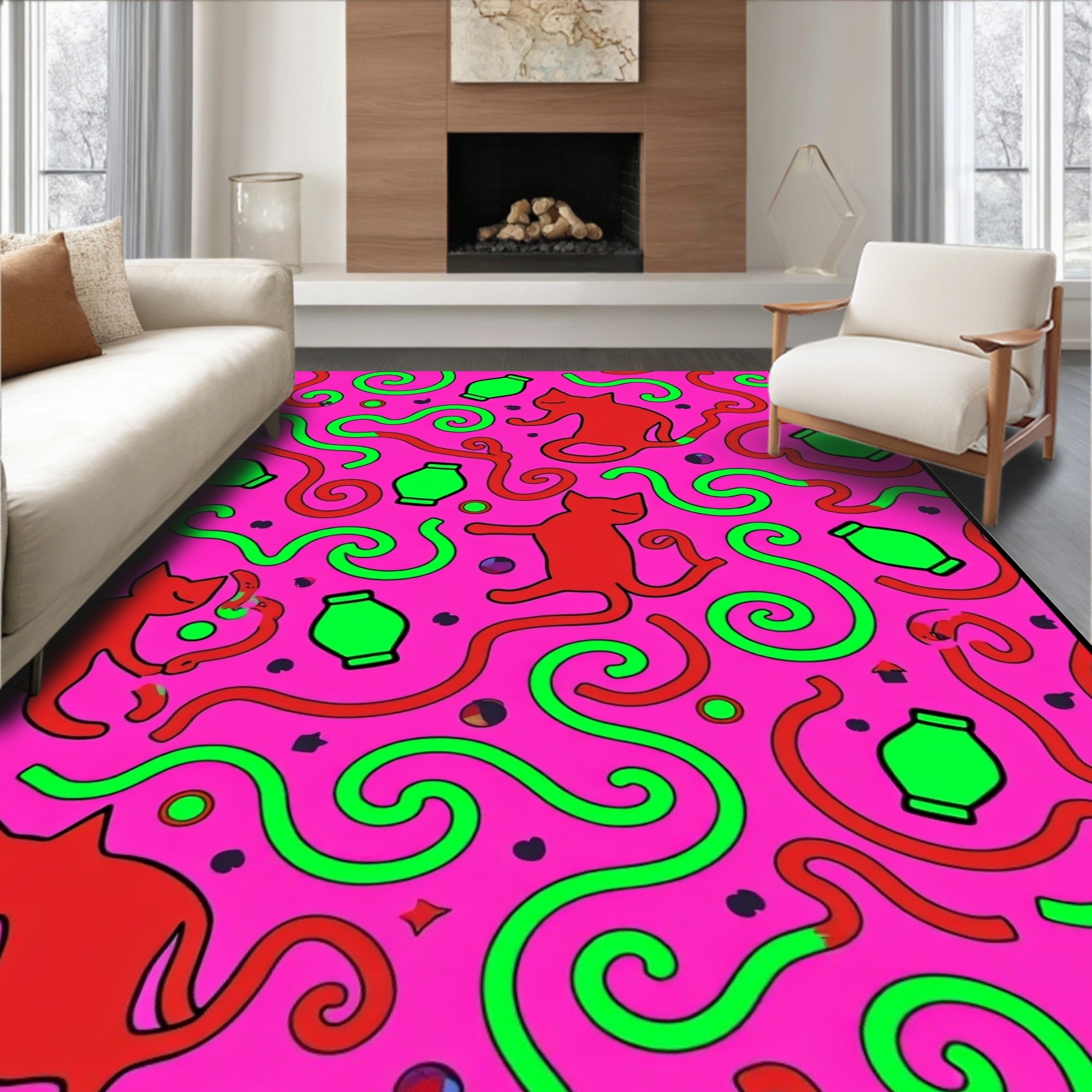 Festive Cat Parade with Twinkling Lantern Motifs and Playful Confetti Accents(Pink)